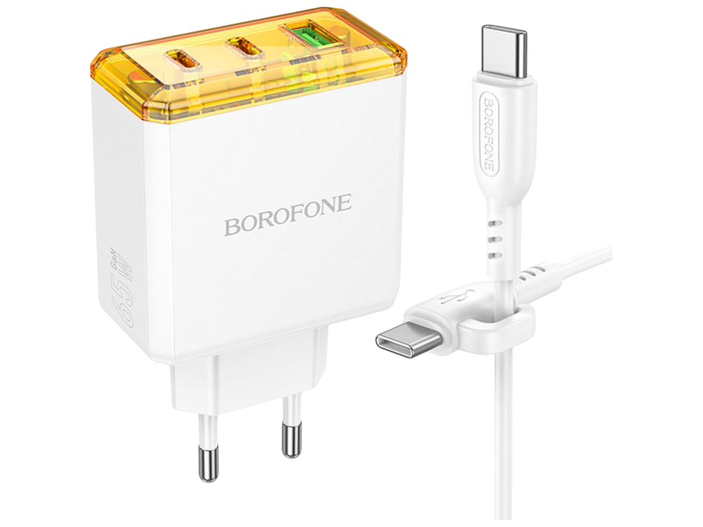 Сетевое зарядное устройство Borofone BAS34A, 2Type-C+1USB, PD/QC 3.0, 65Вт, 130×85×35мм, цвет белый