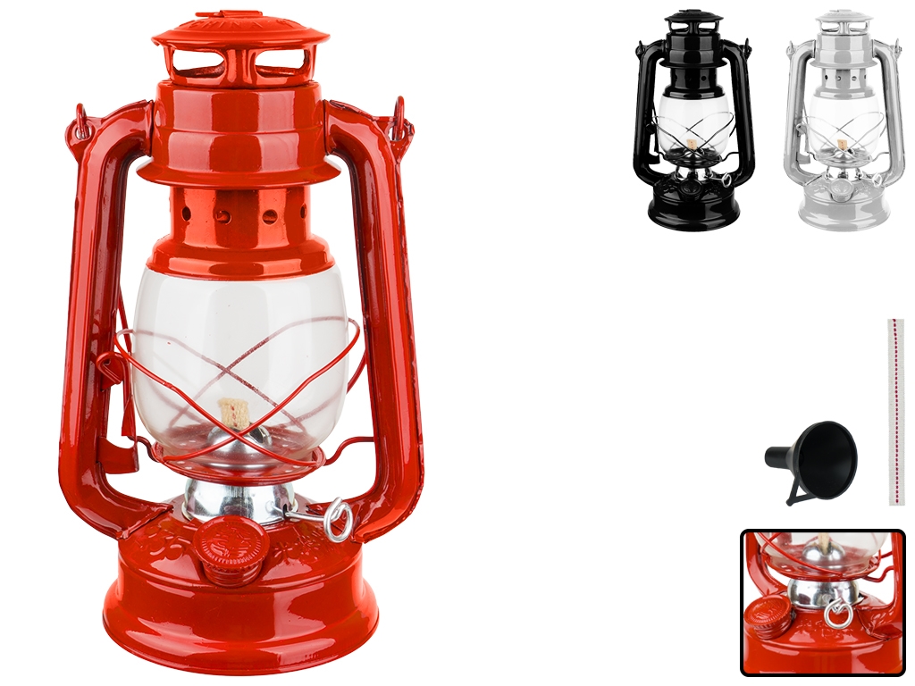 Керосиновая лампа - это светильник, который работает при сгорании керосина. На данный момент очень популярный вид освещения, так как при горении она не выделяет дыма или неприятного запаха. Светильник не только функциональный, но и является прекрасным предметом интерьера. Источником света является фитиль, размещенный внутри стеклянного абажура. Колба эффективно защищает пламя от неблагоприятных погодных условий. В верхней части есть ручка для переноски и ручка, позволяющая повесить светильник. Они гарантируют комфорт при транспортировке. Материал: сталь, стекло. Топливо: керосин, масло. Объем лампы: 300мл. Размер лампы: 15x11,5x23,5см. Длина фитиля: 14см. Комплектация: лампа, фитиль (2шт), лейка (1шт).