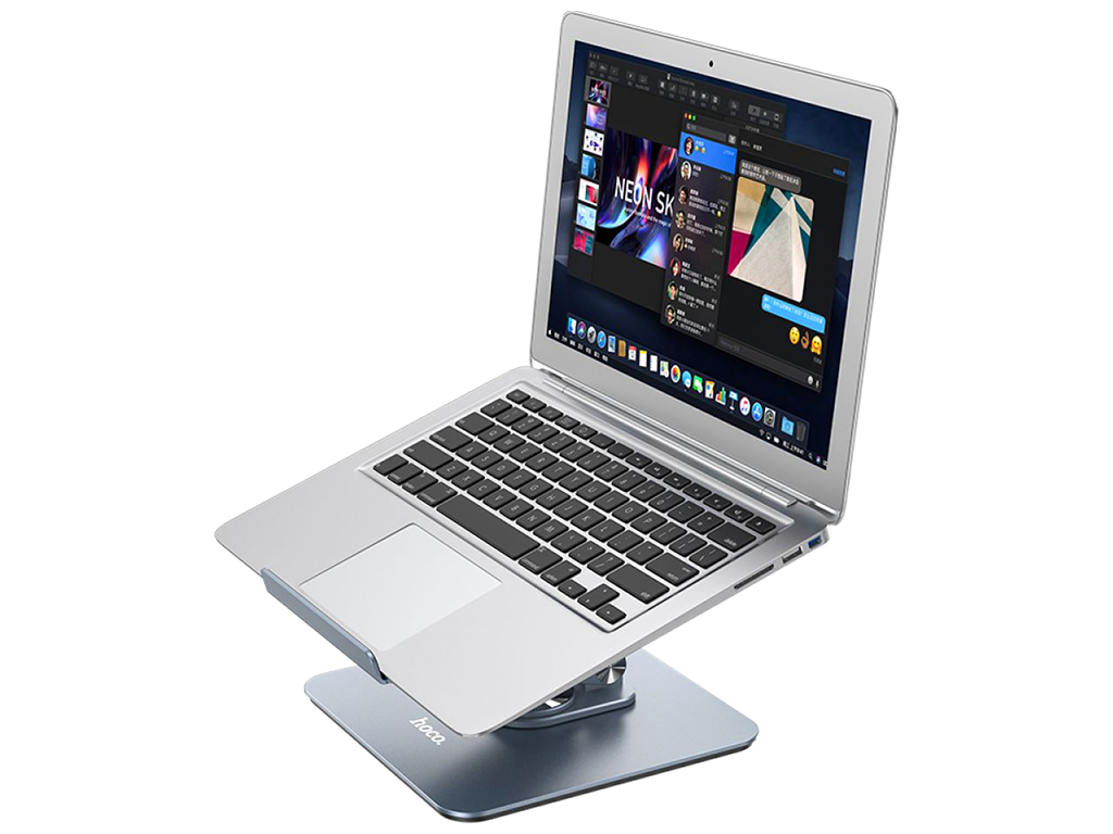 Прочная и современная металлическая основа делает его пригодным для любого помещения в доме, офисе, мастерской или компании. Подставку можно легко переносить. Также она обеспечивает комфорт при работе за ноутбуком. Прорезиненный низ подставки обеспечивает устойчивую и безопасную поверхность для использования ваших устройств.