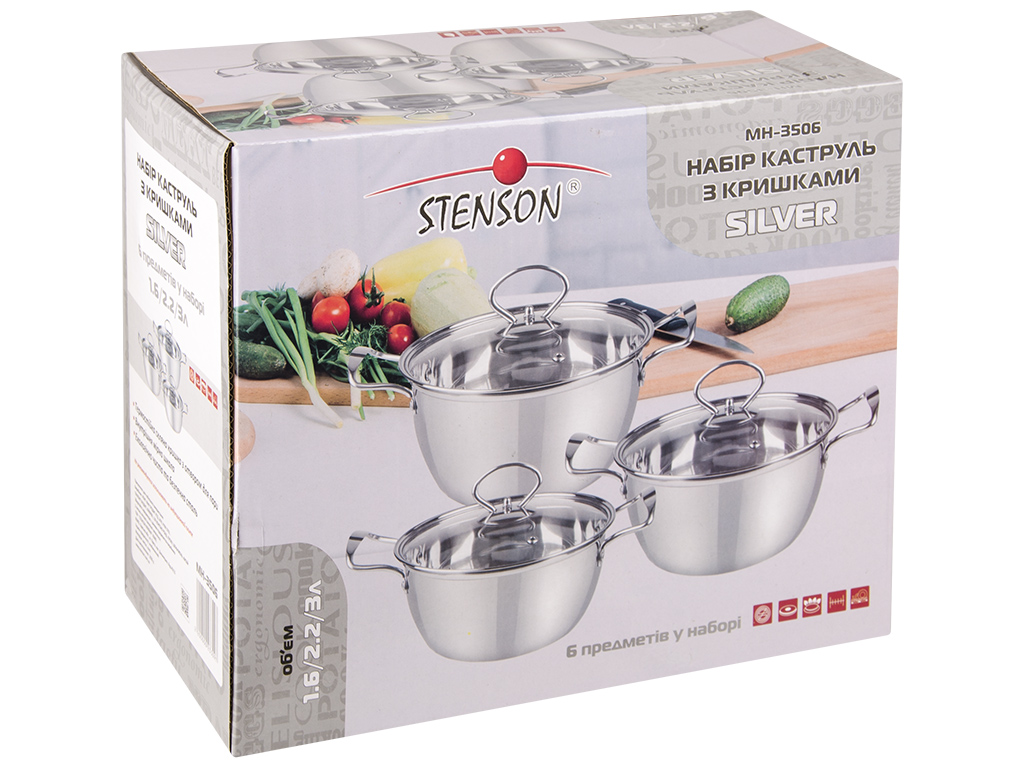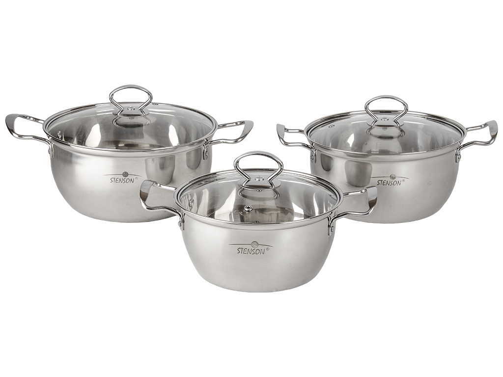 Кастрюли со стеклянными крышками Stenson Silver 1,6-2,2-3л (цена за набор 6 предметов)