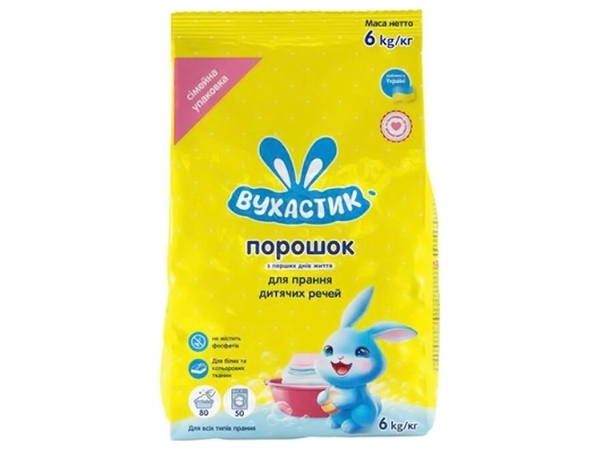 Стиральный порошок Вухастик для стирки детского белья, 0+, 50 стирок, 6кг