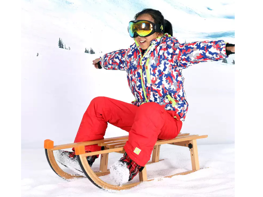 Детские санки предназначены для зимнего катания по снегу во время прогулок и активного отдыха на открытом воздухе. Конструкция выполнена из натуральной древесины бука, которая используется для изготовления салазок и сидений. Сидение состоит из деревянных планок, расположенных с промежутками, что способствует отведению снега во время катания. Полозы имеют классическую изогнутую форму, которая обеспечивает стабильное движение по ровной и слегка неровной поверхности. Передняя часть санок оснащена изогнутыми ручками, которые используются для удержания ребенком во время движения или управления взрослым при буксировке. Конструкция рассчитана на посадку ребенка в сидячем положении, с возможностью опоры для ног на переднюю часть полозьев. Модель используется для сезонного катания зимой и подходит для повседневного использования во время прогулок. Изделие ориентировано на простую механическую эксплуатацию без дополнительных аксессуаров.
