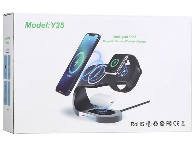 Беспроводное Зарядное Устройство с MagSafe Y35 3in1 3.0A 15W, черное, мятая упаковка