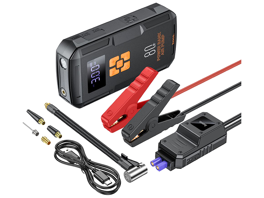 Универсальная мобильная батарея Hoco QS2 Air Pump/Jump Starter/Power Bank(8000mAh), Цвет Черный