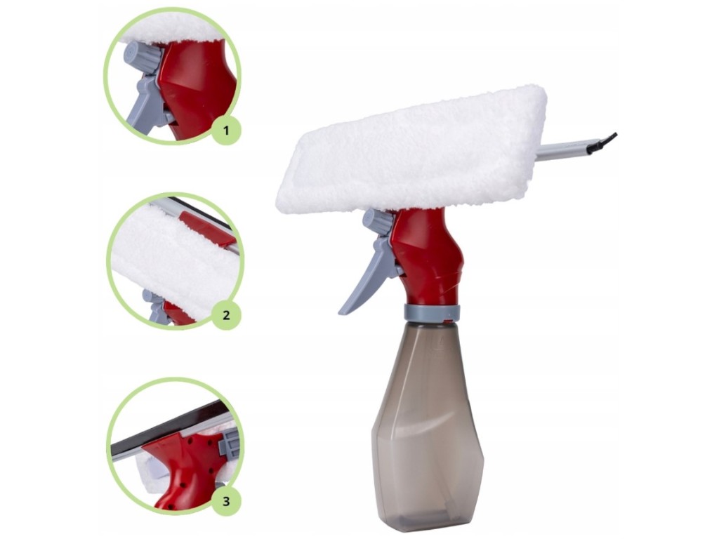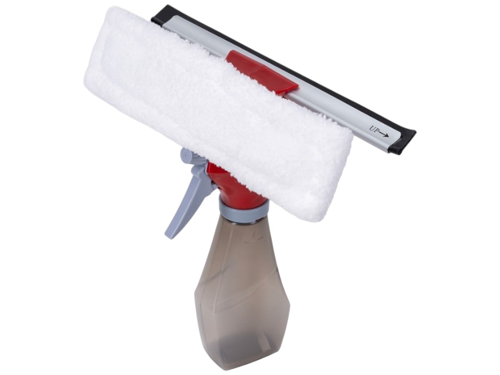 Окномойка-скребок 3в1, c с пульвилизатором, пластик, микрофибра, алюминий, 28см, цвет красный