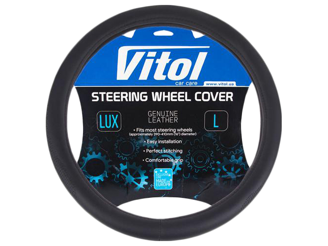 Чехол на руль Vitol, искусственная кожа, размер M, диаметр 37-39см, цвет черный