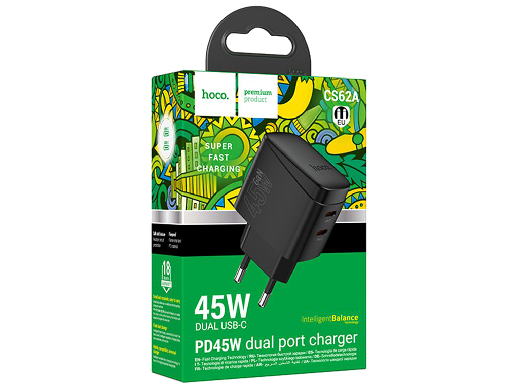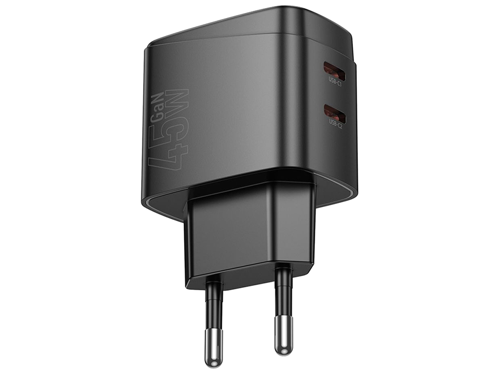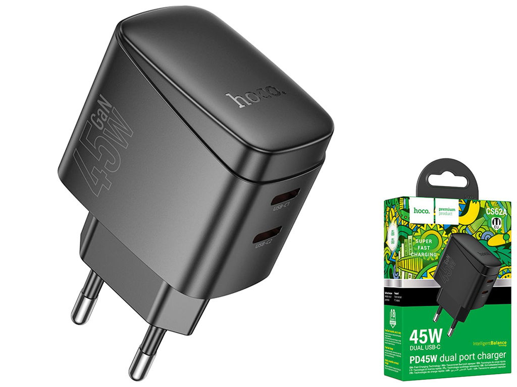 Сетевое зарядное устройство Hoco CS62A 2USB-C PD/QC 45W GAN, цвет черный