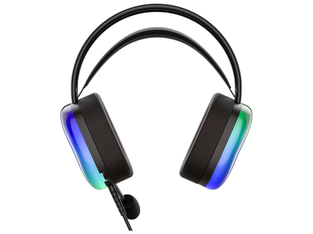 Его оголовье состоит из двух дуг и эластичной накладки, которая подстраивается под форму головы. Драйверы диаметром 50мм с усовершенствованными диафрагмами позволяют им воспроизводить чистый, насыщенный звук в широком частотном диапазоне, включая глубокие басы. Микрофон на гибкой ножке предоставляет возможность общаться с противниками и партнёрами по игре, обеспечивая четкую и громкую передачу речи без искажений и посторонних шумов. Он удобно расположен на одном из ушных элементов вместе с выходом встроенного кабеля и регулятором громкости. Кабель длиной 2 метра оснащен разъемом USB (male) для подключения наушников к настольному ПК, ноутбуку или другому совместимому устройству. Конструкция: Монолитная;