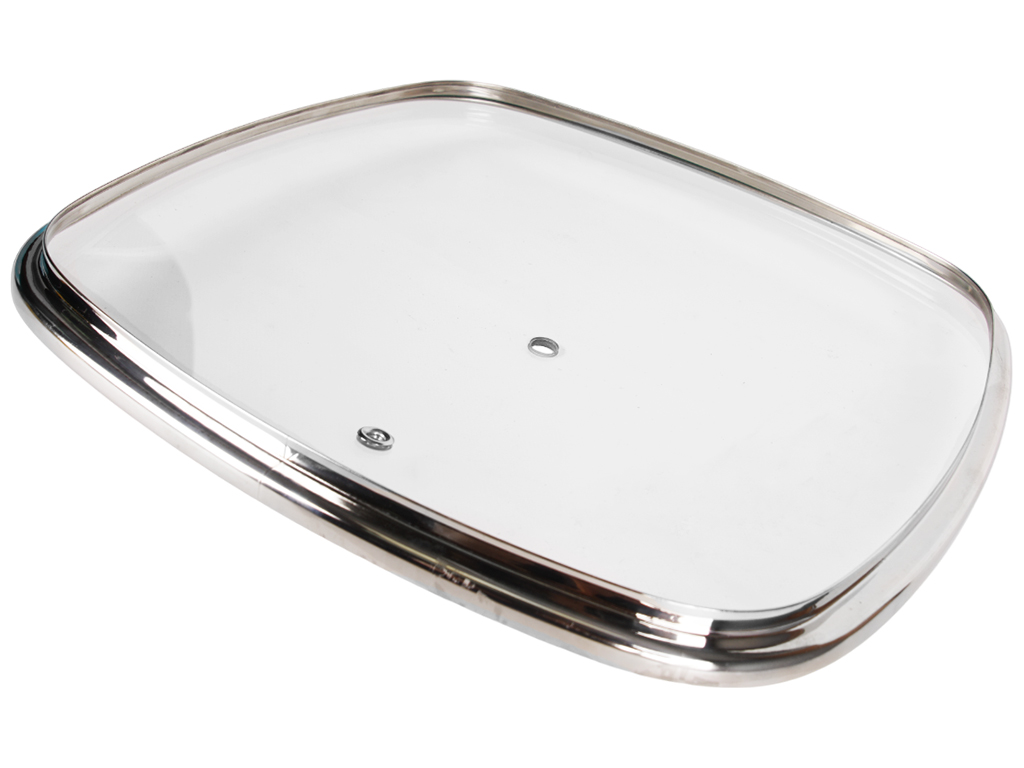 Стеклянная крышка квадратной формы без ручки с ободком из нержавеющей стали и толщиной стекла 0,2см идеально подходит для надежного закрытия кастрюль и сковородок. Элегантный и прочный ободок обеспечивает долговечность и надежность, а прозрачное стекло позволяет контролировать процесс готовки без необходимости снимать крышку.