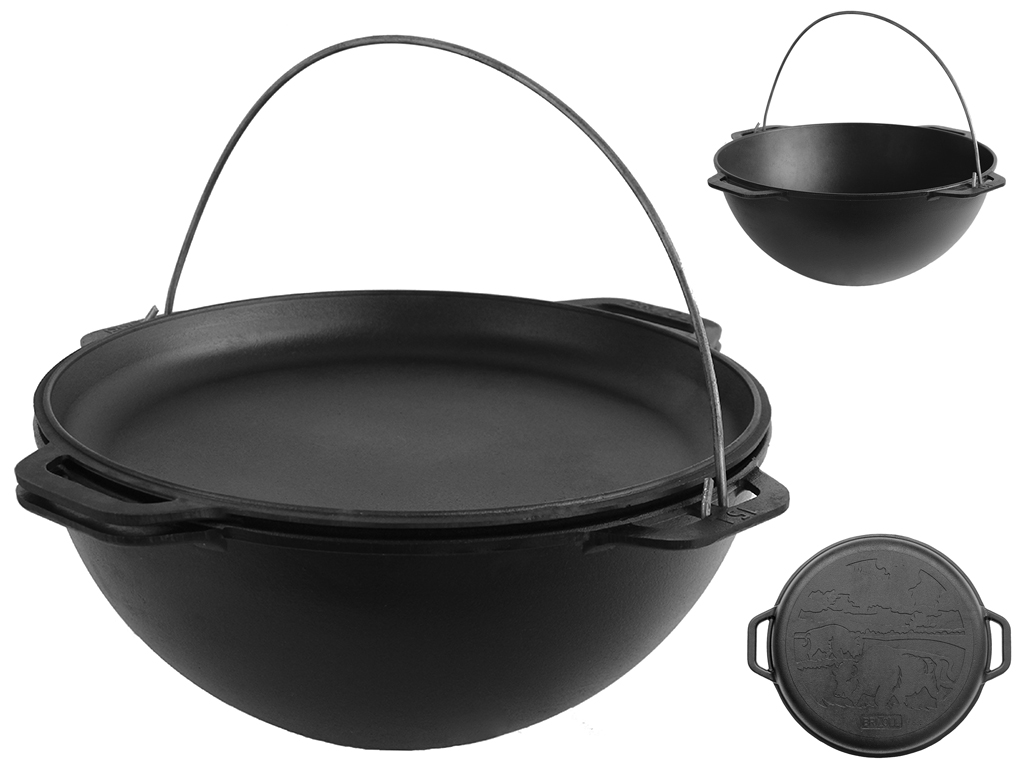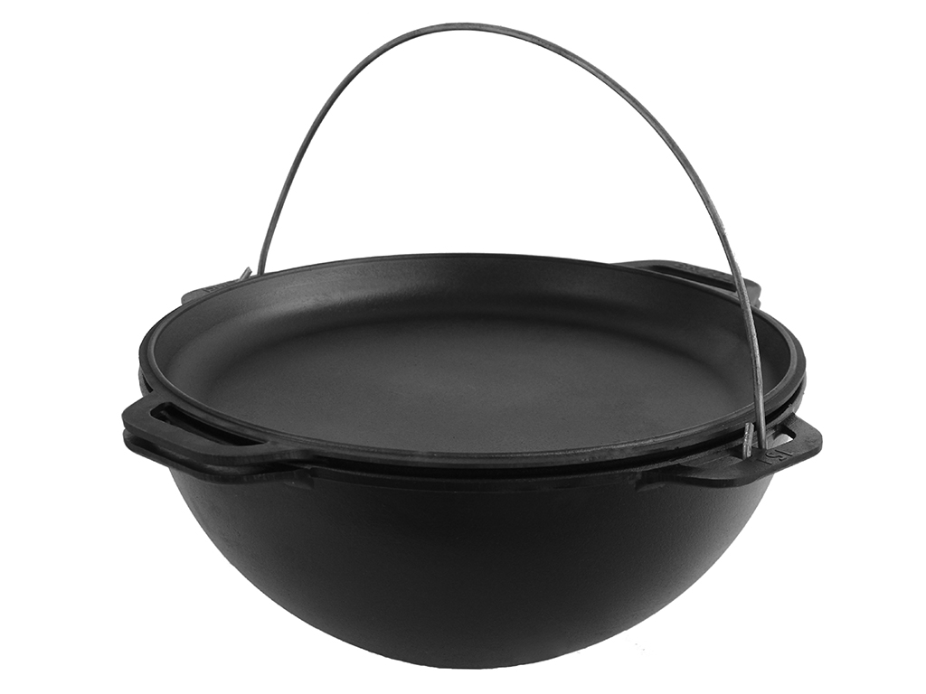 Казан азиатский чугунный Brizoll "Азия" чугунная крышка-сковорода 15л KA15-3
