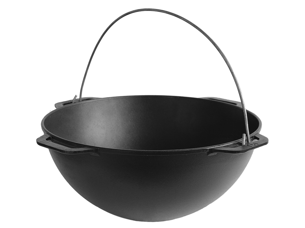 Транспортировочный размер (гофрокороб): 42х43х21,5см. Объем: 15л. Толщина дна: 4,5мм. Толщина стенки: 3,8мм. Материал: чугун. 4 ручки у казана, 2 ручки на крышке. Без коробки. Безопасная и экологически чистая посуда. Обладает естественным антипригарным покрытием. Обогащает пищу железом. Имеет неограниченный срок эксплуатации. Подходит для всех видов плит. Укомплектован дужкой и чугунной крышкой. Предназначен для приготовления блюд на костре или мангале, требующих тушения, томления и приготовления в собственном соку. Толстые стенки и полусферическое дно аккумулируют тепло по всей поверхности казана, и способствуют равномерному приготовлению пищи. Мясо, плов и другие блюда, приготовленные в казане из чугуна, по-особенному вкусные, сочные и имеют просто невероятный насыщенный аромат. Чугунный казан устойчивый к повреждениям. Незаменимый помощник в походе, на даче и отдыхе на природе.