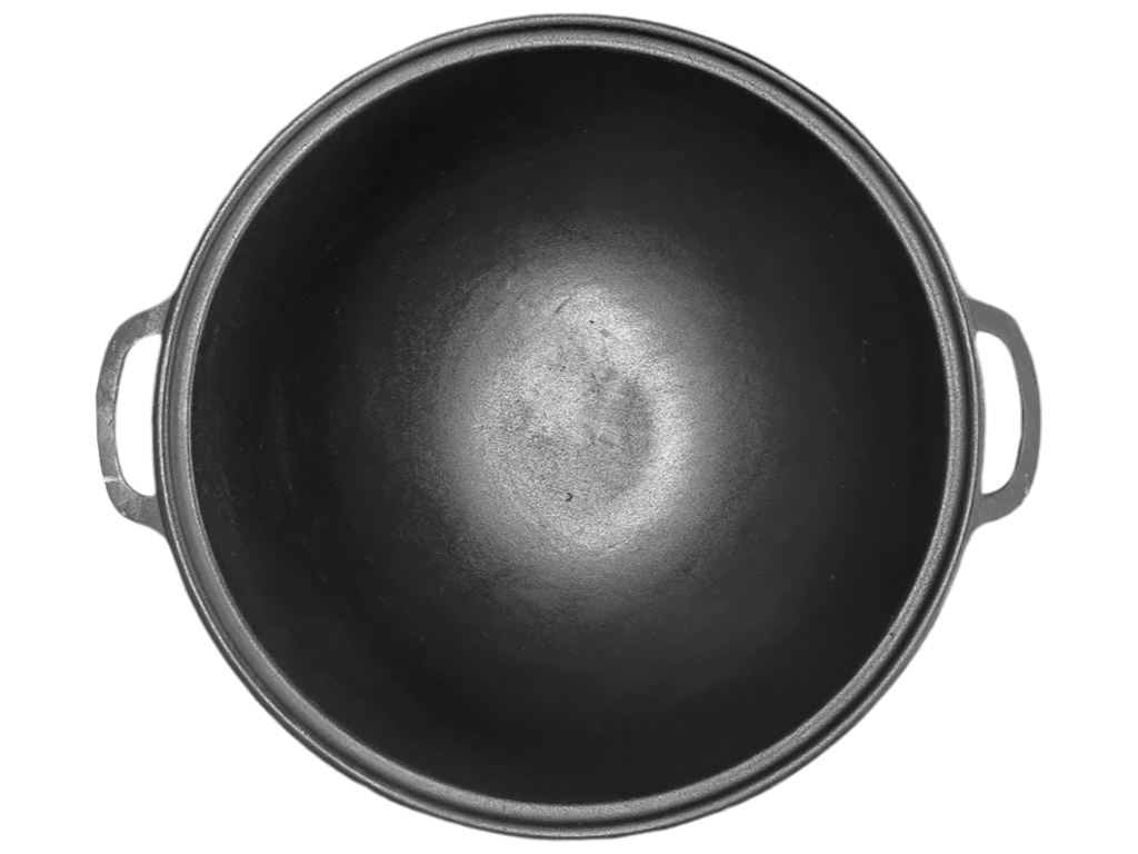 Казан чугунный с крышкой-сковородой Maysternya классической формы. Дно с утолщением. Борт немного изогнут по краям, чтобы крышка утопилась и с нее не капало. Размер казана: диаметр 40см, высота 21см, толщина стенок 4мм. Размер сковороды-крышки: диаметр 40см, высота 4см, толщина стенок 3,5см. Объем: 18л. Вес: 14,32кг. Материал: литейный чугун.