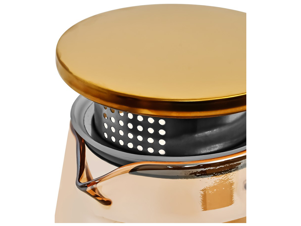 Стеклянный графин с крышкой из нержавеющей стали и металлическим фильтром идеально подходит для холодных напитков. Прозрачный корпус с золотым напылением добавляет элегантности. Фильтр удерживает кусочки фруктов и лед, сохраняя напиток чистым. Плотно закрывающаяся крышка предотвращает проливание и сохраняет аромат, а стеклянный корпус позволяет легко контролировать уровень жидкости и добавлять ингредиенты. Нельзя использовать в микроволновой печи.