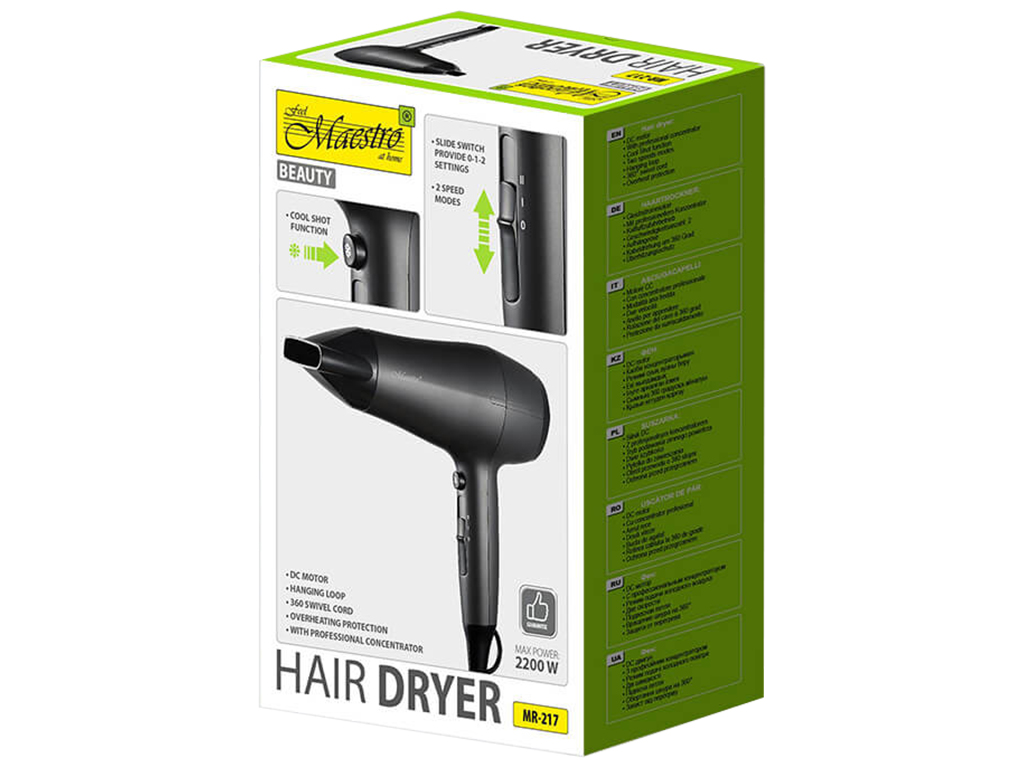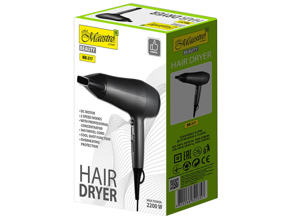 Фен Maestro, 2 скорости, подача холодного воздуха, 2200Вт