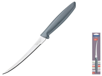 Набор ножей Tramontina Plenus Black, 3 предмета. Комплектация: нож для томатов 1шт-12,7см. Нож для овощей 1шт-7,6см. Нож для мяса 1шт-15,2см. Материал лезвия: нержавейка AISI 420. Материал ручки: полипропилен. Режущая кромка ножа: гладкая и зубчатая. Упаковка: индивидуальный блистер. Можно мыть в посудомоечной машине.
