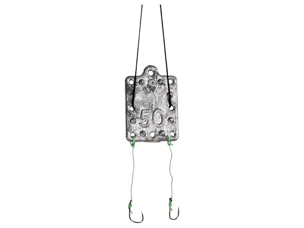 Макушатник с крючками. Размер: 3,2х0,7х4,8см. Вес: 50г. Количество крючков: 2шт. Материал: свинец. Цвет: металл. Макушатник представляет собой плоское грузило с ремешком из капроновой нити, который фиксирует порцию макухи. Поверхность макушатника покрыта выемками, что предотвращает скольжение оснастки по дну и удерживает макуху. Отлично подходит для ловли карпа и других рыб. Принцип действия макушатника прост: снасть с приманкой забрасывают в воду, через некоторое время макуха начинает раскисать и распространять по водоему манящий запах, привлеченный ароматом карп приближается к насадке и начинает ее обсасывать, вместе с пищей втягивая в пасть крючки. Проглотив наживку, рыба старается сразу залечь на дно и затаиться. В этот момент следует делать осторожную подсечку и вываживать добычу.