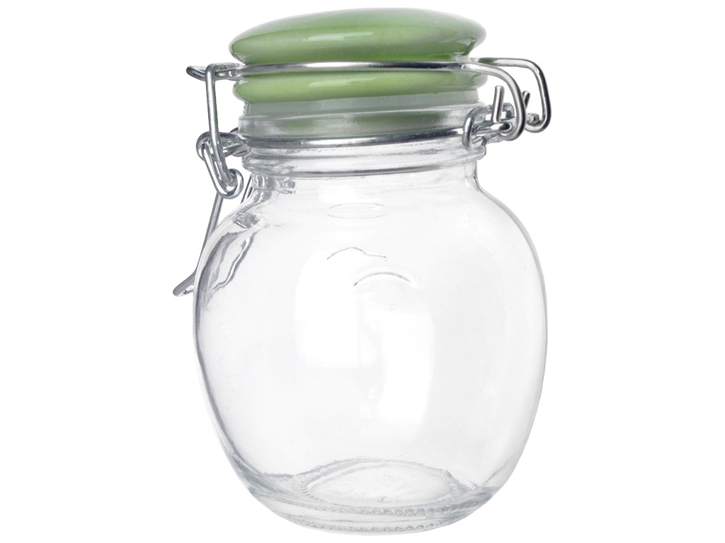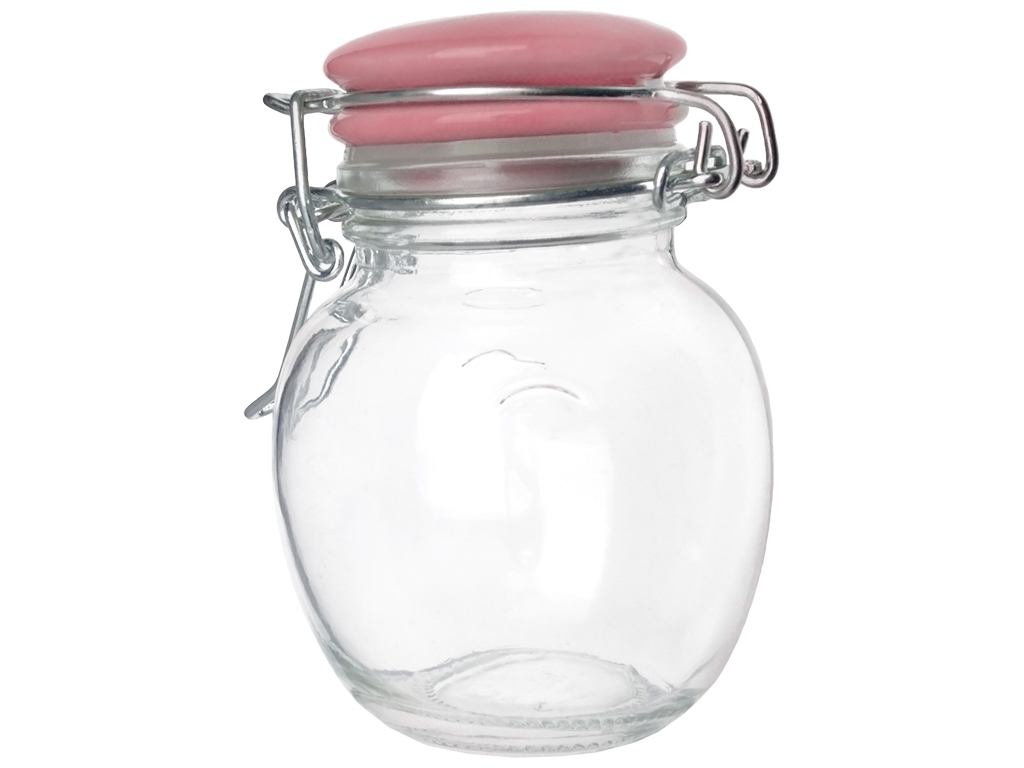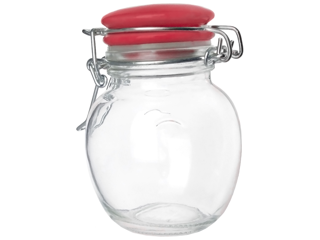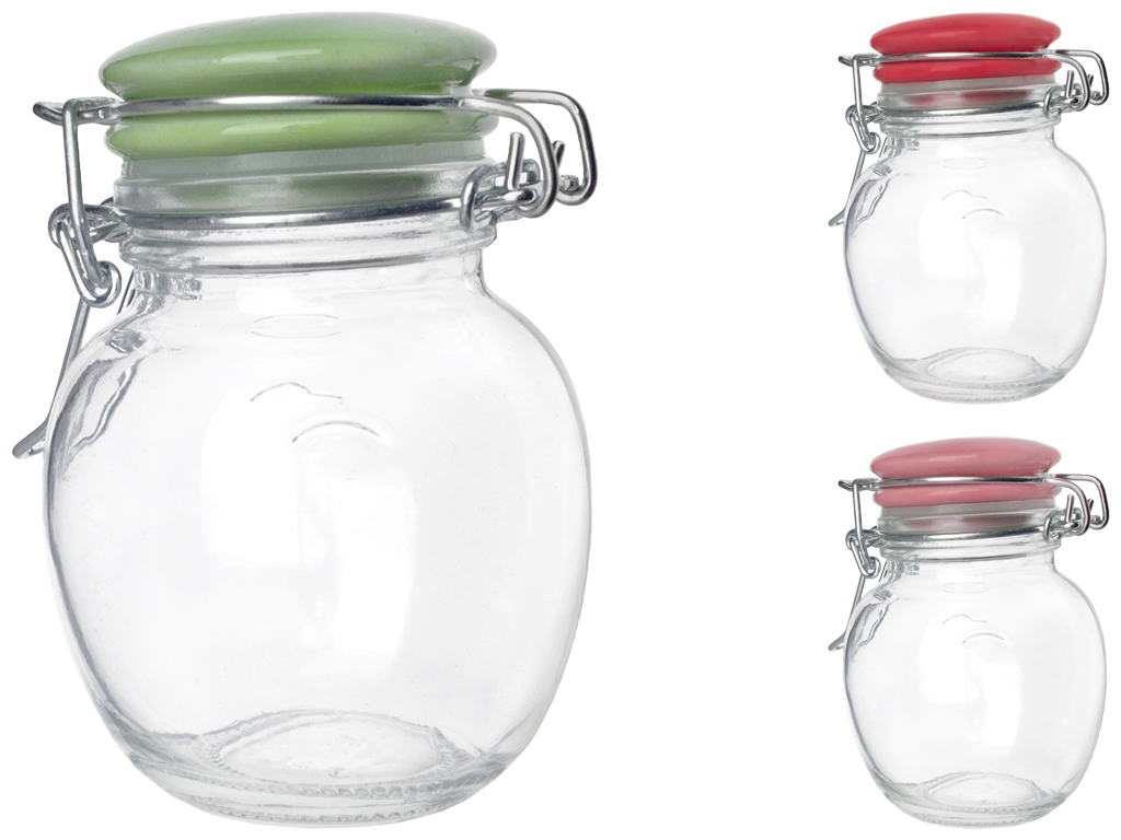 Размер с зажимом: 7,3х6,4х9,2см. Объем: 120мл. Материал: стеклянная емкость, керамическая крышка, силиконовый уплотнитель, металлический зажим. Форма: круглая. Цвета крышек: салатовый, розовый, красный.