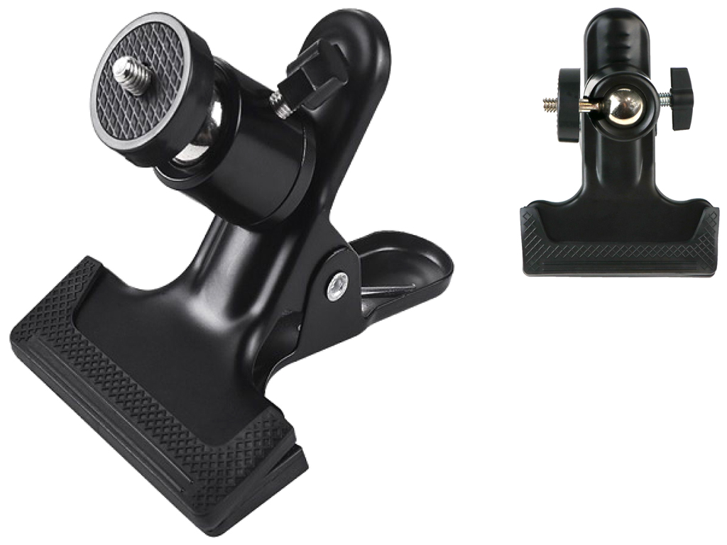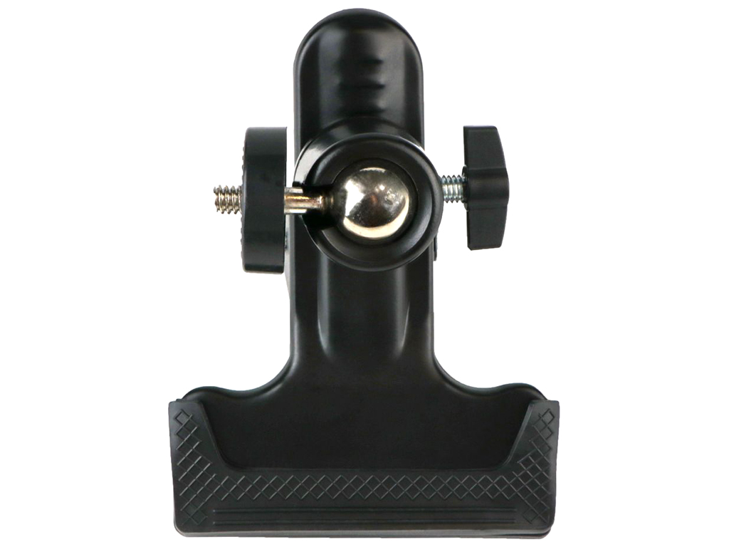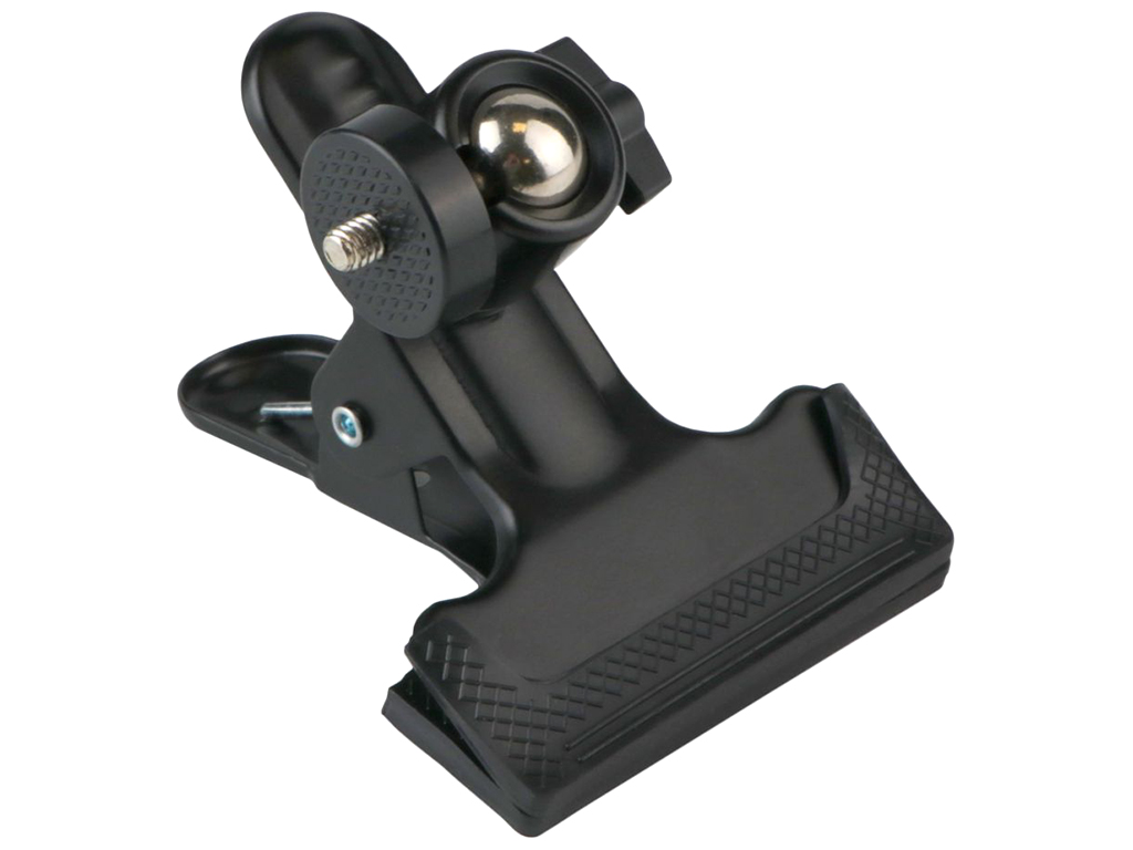 Шаровая голова на прищепке (металл) – это простое и эффективное решение для надежной фиксации компактных фото- и видеокамер, ламп, держателей, отражателей и других устройств со стандартным резьбовым соединением 1/4 Её можно крепить в горизонтальном или вертикальном положении практически в любом месте: от кабелей до столов с соответствующей толщиной.