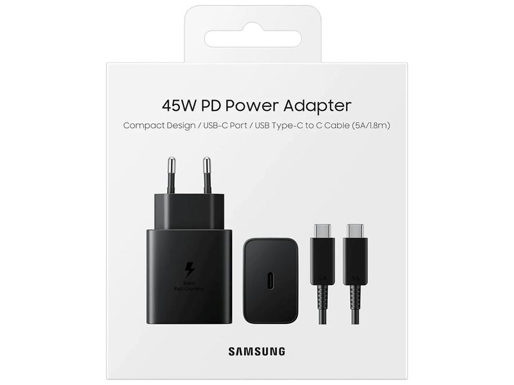 Сетевое зарядное устройство Samsung 45w, type-c 1:1, быстрая зарядка, цвет чёрный