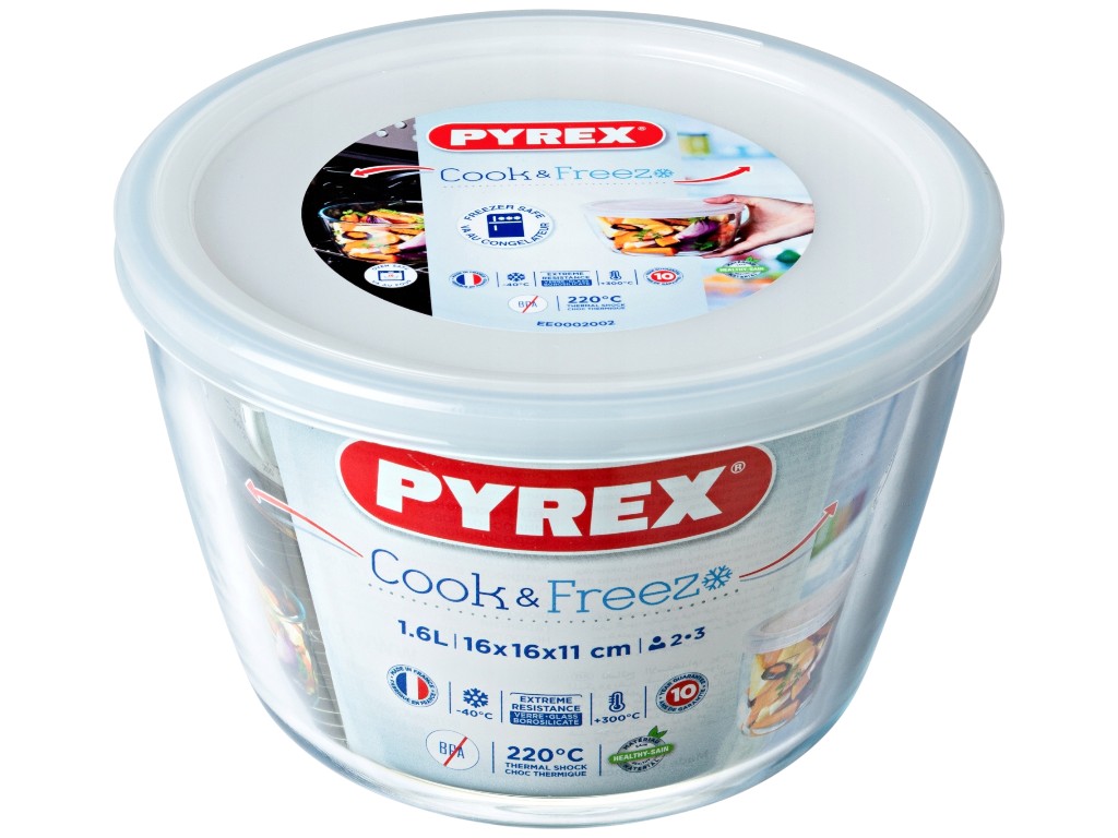 Форма Pyrex Cook&Freez удобна для запекания, хранения и заморозки продуктов. Прозрачное боросиликатное стекло устойчиво к перепадам температуры, подходит для духовки, холодильника и морозильной камеры. Материал не впитывает запахи и не изменяет вкус пищи, сохраняя естественный аромат блюд. Круглая форма практична для приготовления и сервировки, а пластиковая крышка плотно закрывает емкость, защищая содержимое от влаги и посторонних запахов. Изделие просто в уходе и сохраняет прозрачность даже при частом использовании. Крышку рекомендуется снимать при нагреве.