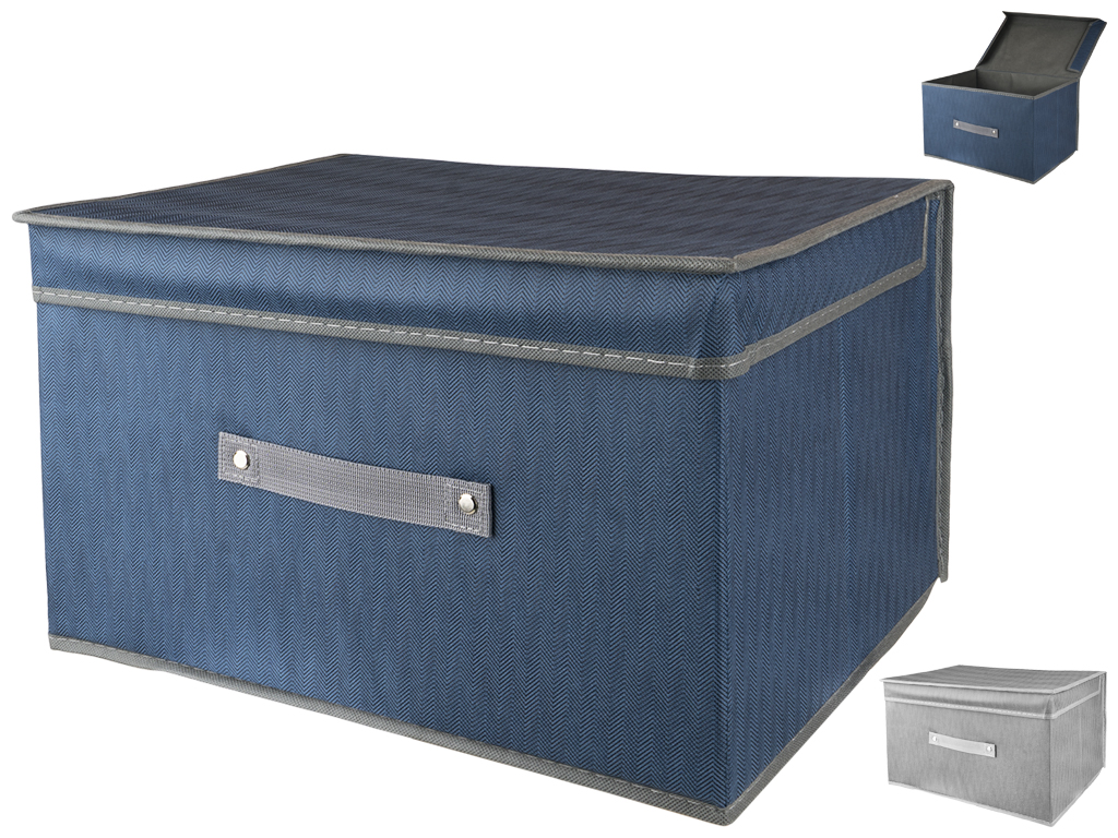 Размер: 40х30х25см. Материал: нетканое полотно с принтом под мешковину, картон. Цвета ассорти. Коробка-органайзер ПВХ для хранения белья. Крышка откидная не снимается, закрывается на одну липучку. На тыльной стороне расположена ручка. Поставляется в пакете.