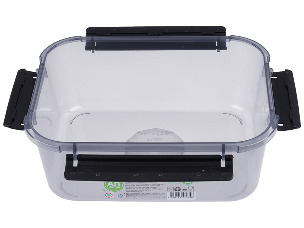 Контейнер универсальный Ал-Пластик Limited line прямоугольный изготовлен из высококачественной пищевой пластмассы, которая может контактировать с пищей, абсолютно безопасна для здоровья, не содержит вредных веществ, не поглощает посторонние запахи и не имеет своего. Крышка закрывается на замки-защелки с 4 сторон. Для плотного закрытия крышка оснащена силиконовым уплотнителем. Объем: 1,95л. Цвет: черный. Размер: 21,7х17х8,5см. Размер без крышки: 21х16,5х7,8см.