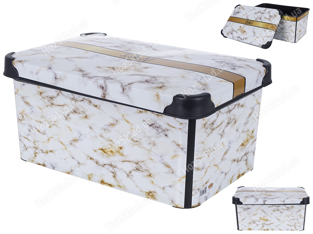 Контейнер для хранения Violet House 0647 Decor Marble White с крышкой. Объем: 10л. Размеры (ВхШхД): 16,5х23,5х35см. Материал: полипропилен, форма: прямоугольная. Цвет: белый, золотой.