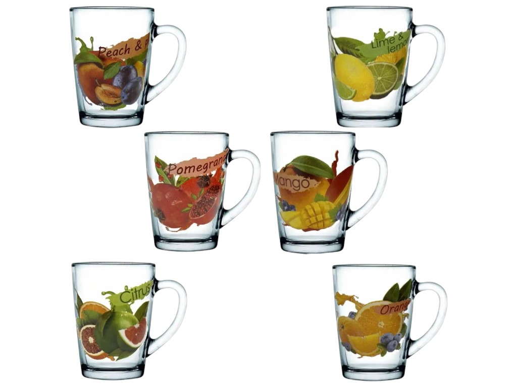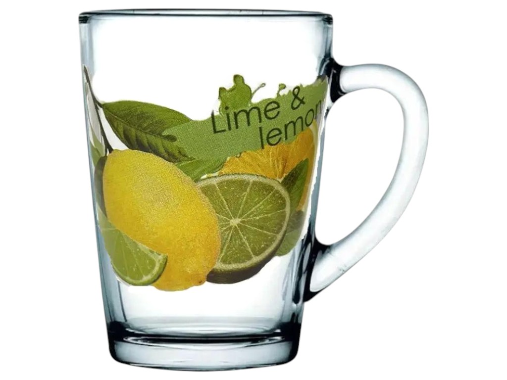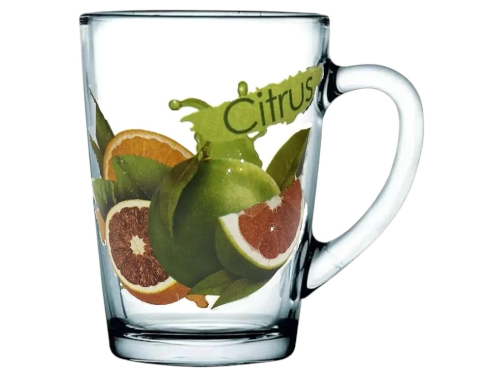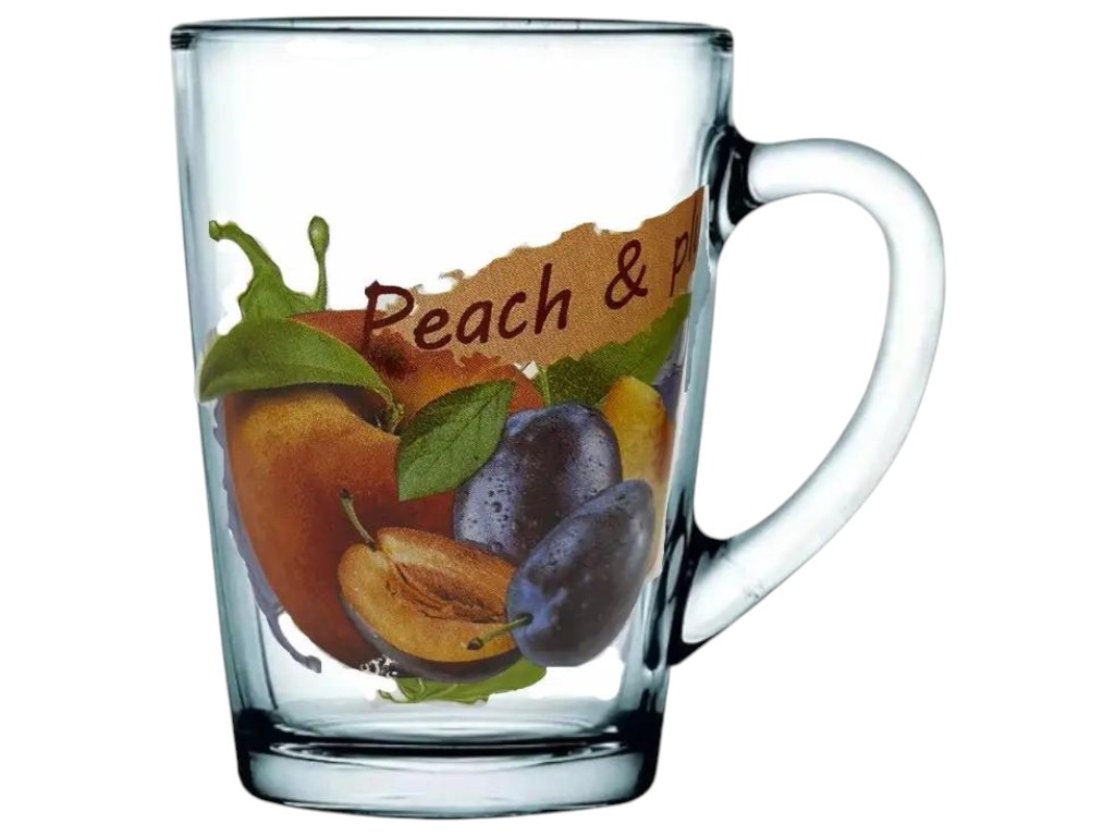Яркая чашка из прозрачного стекла с фруктовым декором поднимает настроение и делает каждый напиток немного вкуснее. Классическая форма с удобной ручкой подойдёт для подачи сока, чая или компота. Фруктовые изображения нанесены стойким способом, не боятся мытья в посудомоечной машине.