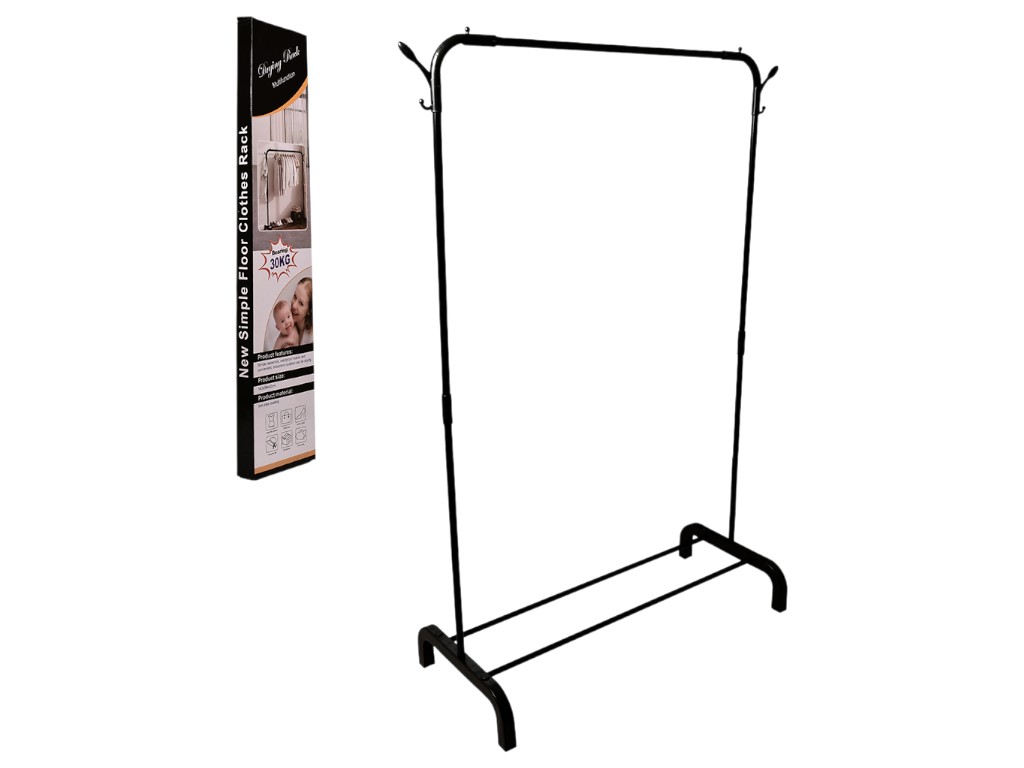 Вешалка-стойка для одежды металлическая, пластиковые крючки, 110×45×150см, цвет черный