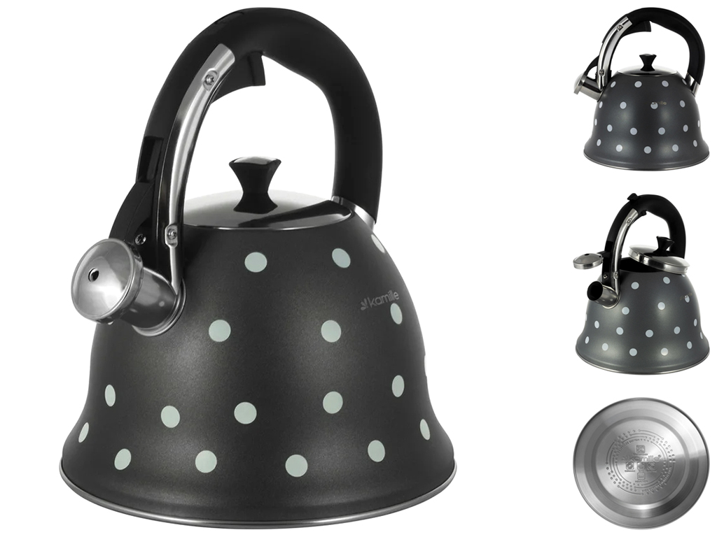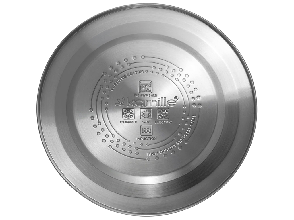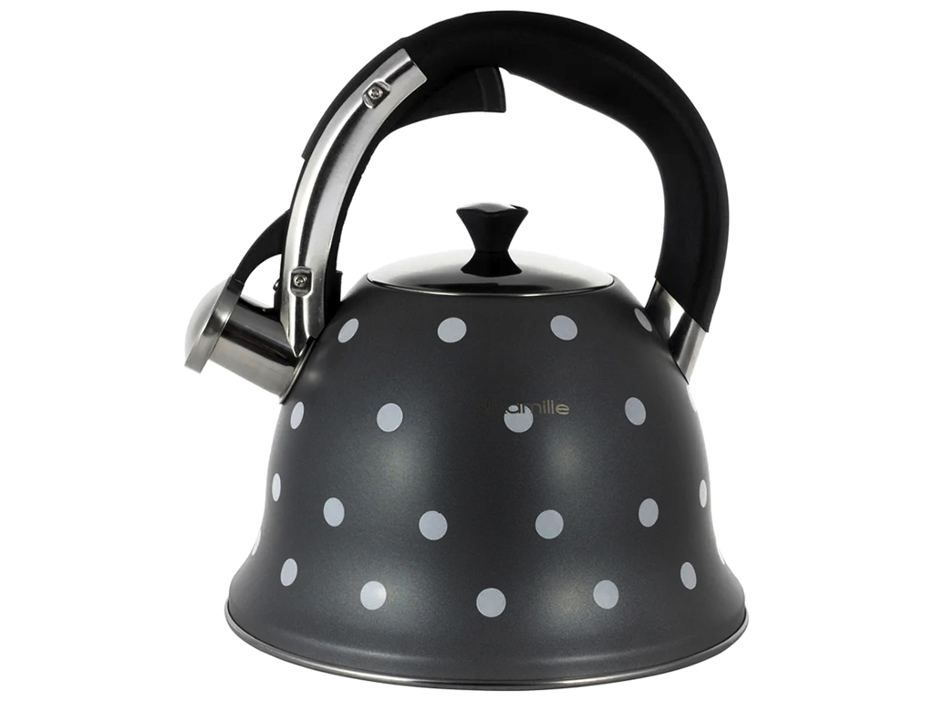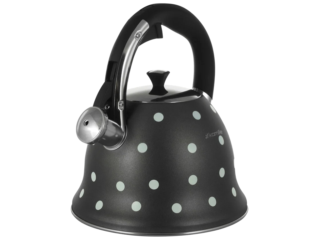 Объем: 2,7л. Цвет: черный. Чайник Kamille изготовлен из высококачественных материалов с использованием новейших технологий производства, благодаря чему подходит для интенсивного ежедневного использования, а его эстетичный вид непременно подойдет к дизайну Вашей кухни. Материал: нержавеющая сталь. Материал ручки: Бакелит. Тип ручки: фиксированная. Свисток: есть. Подходит для плит: индукционных, газовых, керамических, электрических. Подходит для мытья в посудомоечной машине: да.