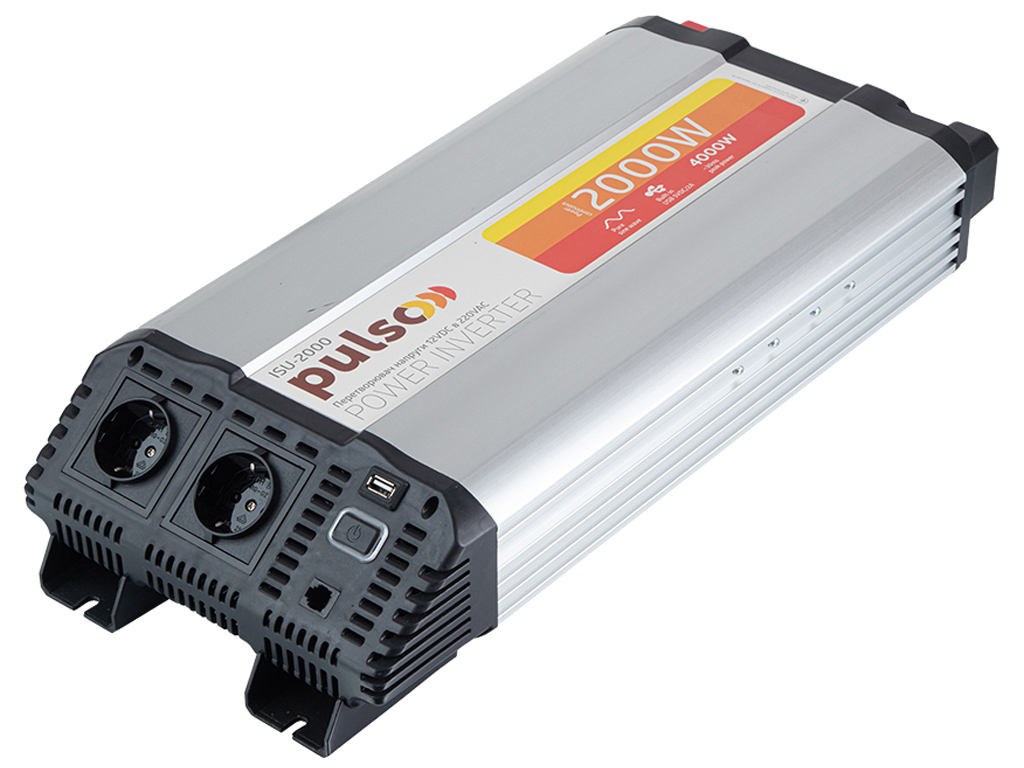 Преобразователь напряжения PULSO,12V-220V/2000W/USB-5VDC2.0A, синусоидальная волна, клеммы (ISU-2000