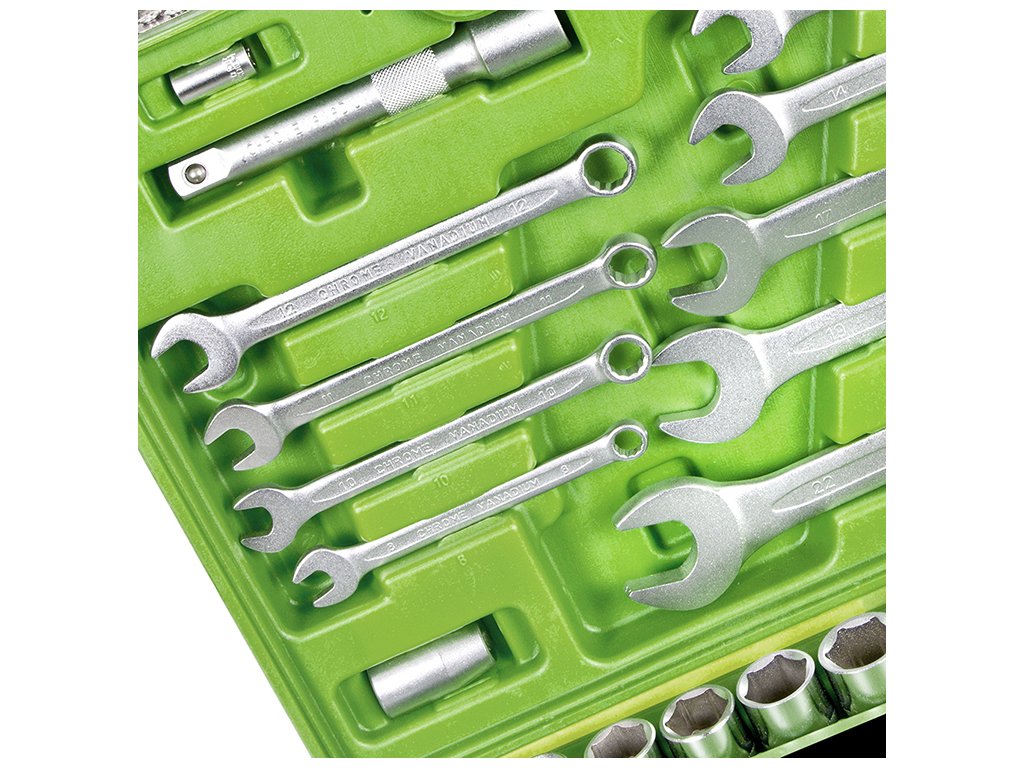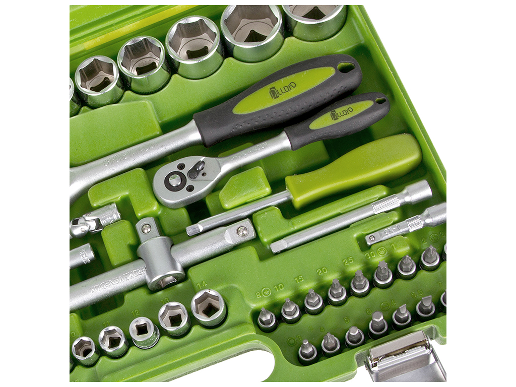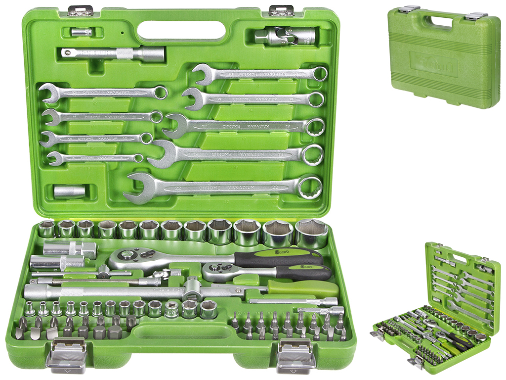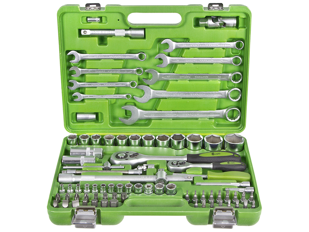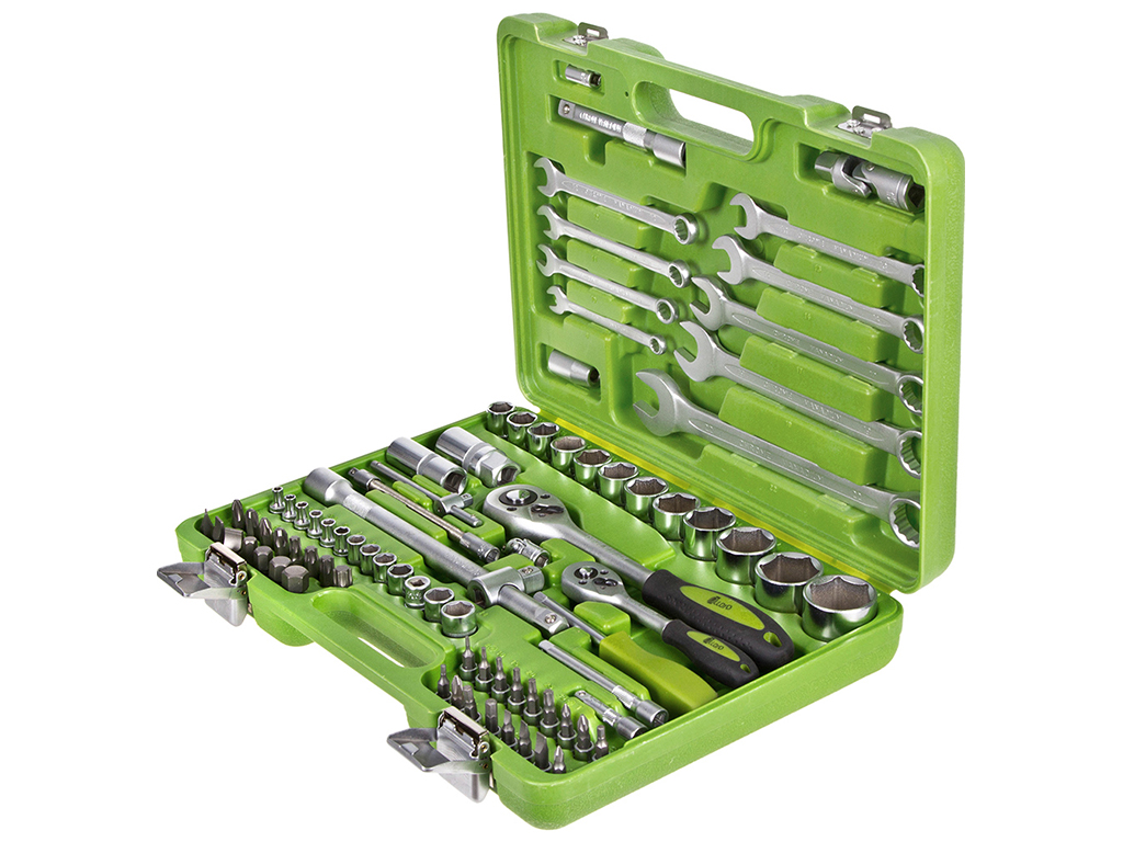 Набор головок и ключей Alloid универсальный в наборе содержится 82 единицы инструментов, которые позволяют выполнять большинство задач в автомастерской. В комплекте есть все необходимое для ремонта - от трещоток на квадраты 1/2" и 1/4" до большого выбора гаечных ключей, головок и бит разных типов. Головки изготовлены из высококачественной легированной хромованадиевой стали и имеют трехслойное покрытие. Инструмент способен выдержать большие нагрузки. Также, головки оборудованы компенсатором напряжения и легко очищаются благодаря зеркальной полировке поверхности. Набор отличается компактностью - все содержимое хранится в легком и удобном чемодане, изготовленном из ударопрочного пластика. Материал: хром-ванадиевая сталь.