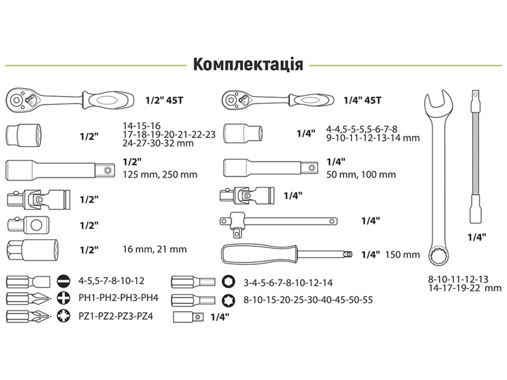Набор головок и ключей Alloid 1/4&1/2, универсальный (цена за набор 82 предмета) НГ-4082П