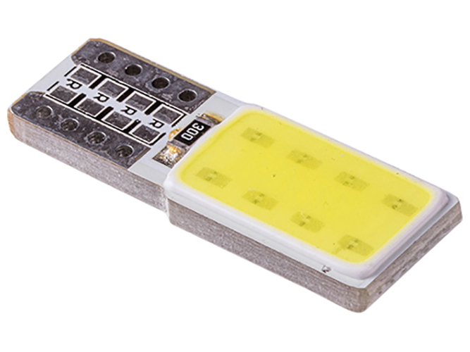 Лампа Pulso габаритная LED T10(T16)/COB, 12v, 3w, 72lm White (LP-167222). Режим работы: стоп-повторитель поворотов-задний ход. Цвет свечения: холодный белый. Цоколь лампы: T10(W16W). Тип лампы: W2.1x9.5d.