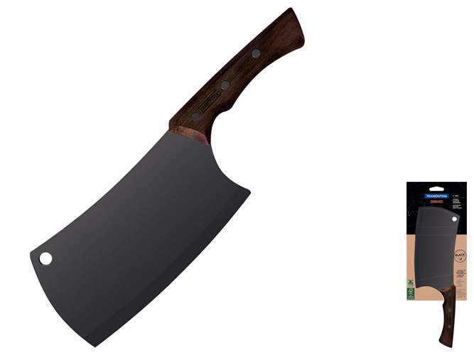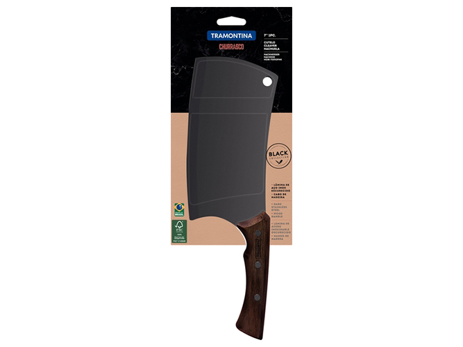 Нож-тесак Tramontina Churrasco Black, 17,8см. Материал лезвия: чёрная нержавеющая сталь. Материал ручки: дерево. Толщина лезвия 2,5мм, (толщина лезвия тесака 3,0мм). Режущая край ножа: гладкая. Цвет: черный/коричневый. Эргономичная рукоятка для повышенного комфорта. Рекомендуется ручная мойка. Размер: 32х2,15х10,66см.