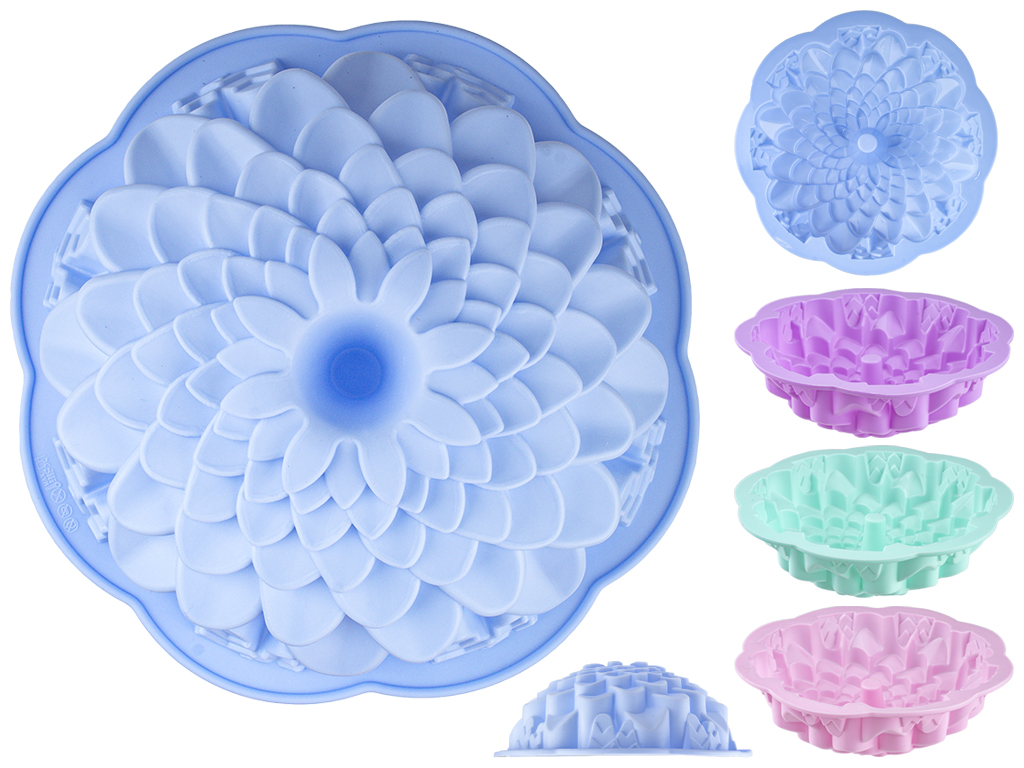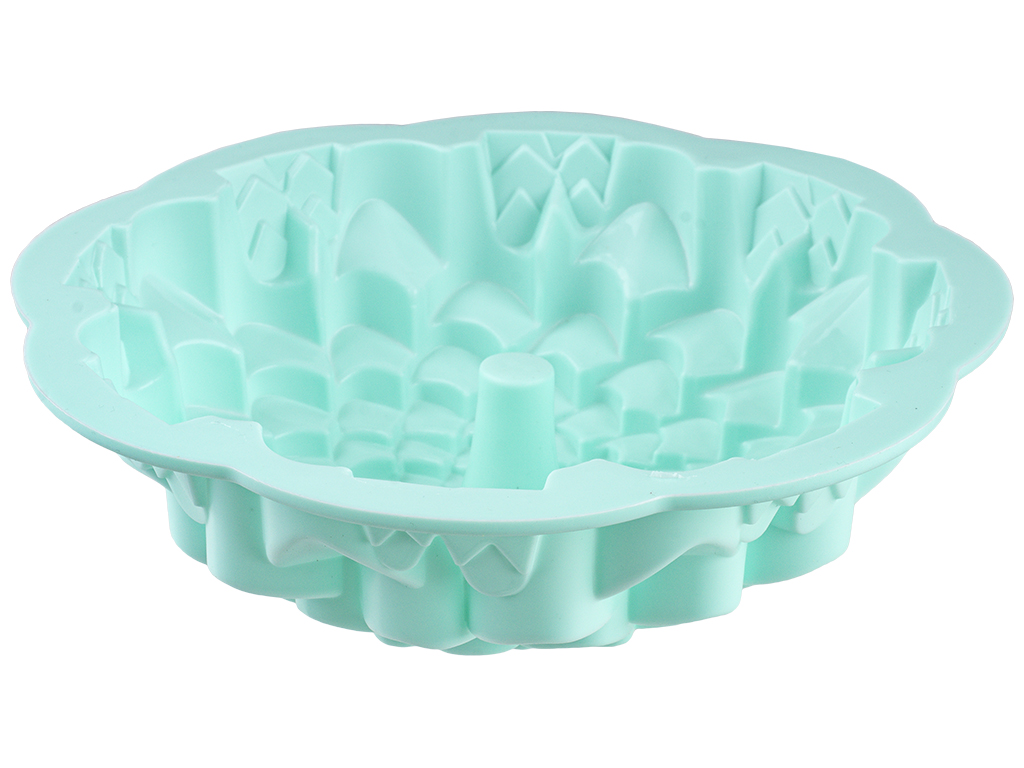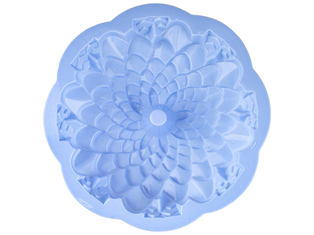 Размер формы: 22х22х7,5см, внутренний диаметр 19см. Цвета: сиреневый, розовый, зеленый (светлый изумрудный), голубой. Форма образует полое пространство в выпечке, которое можно заполнить начинкой.