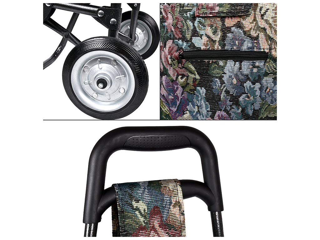Складная тачка с сумкой на металлических колесах предназначена для ежедневной транспортировки покупок или грузов в бытовых условиях. Прочная рама из металла обеспечивает устойчивость и способность выдерживать нагрузки, а объемная сумка из полиэстера устойчива к износу, загрязнениям и влаге. Тележка легко складывается для хранения в ограниченном пространстве. Металлические колеса обеспечивают плавное передвижение даже по неровным поверхностям, а клапан на сумке защищает содержимое от дождя и пыли. Декоративное оформление придает модели выразительный внешний вид.
