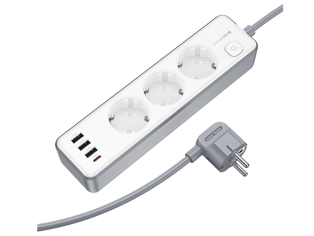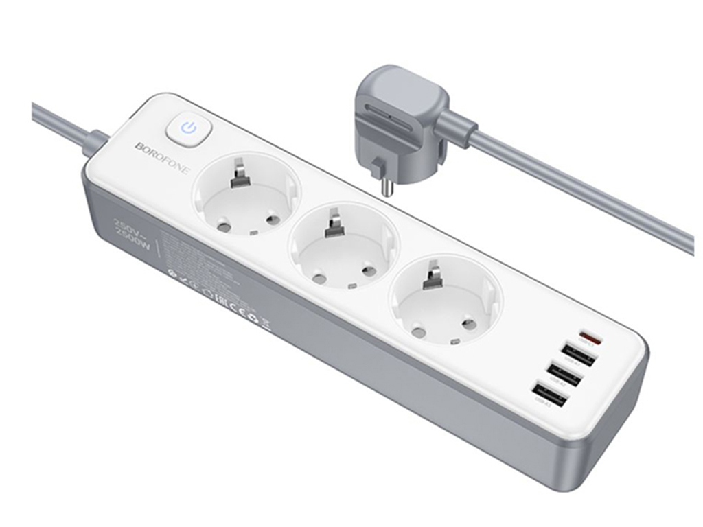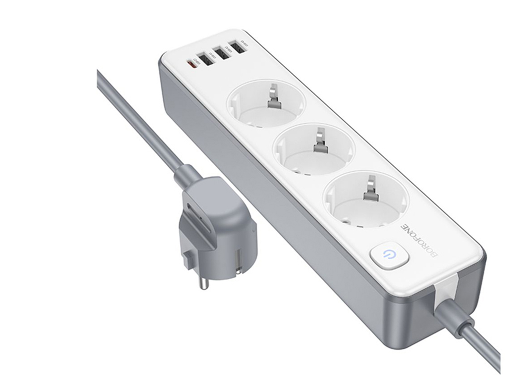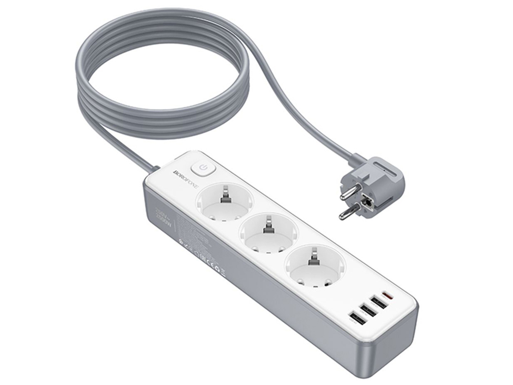Сетевой удлинитель Borofone BAC9 PD20W, 3 USB, 1 Type-C, кабель 2 метра, цвет белый