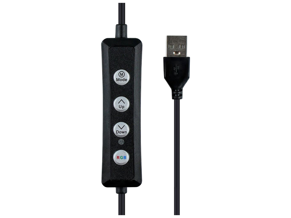 Его RGB светодиоды выделяются увеличенным ресурсом работы, излучают достаточно яркий, безопасный для глаз свет с незаметным мерцанием. Модель поддерживает регулировку яркости и цветовой температуры, может светить теплым, желтым и смешанным светом, а также разными цветами и их комбинациями. Конструкция аксессуара дополнена шарнирным соединением с резьбовым креплением 1/4 для его установки на штатив и съемным универсальным держателем для смартфона на гибкой ножке Для подключения лампы к источнику питания, ее включения и настройки имеется кабель с встроенным пультом управления и разъемом USB (male). Конструкция: Шарнирная/составная;