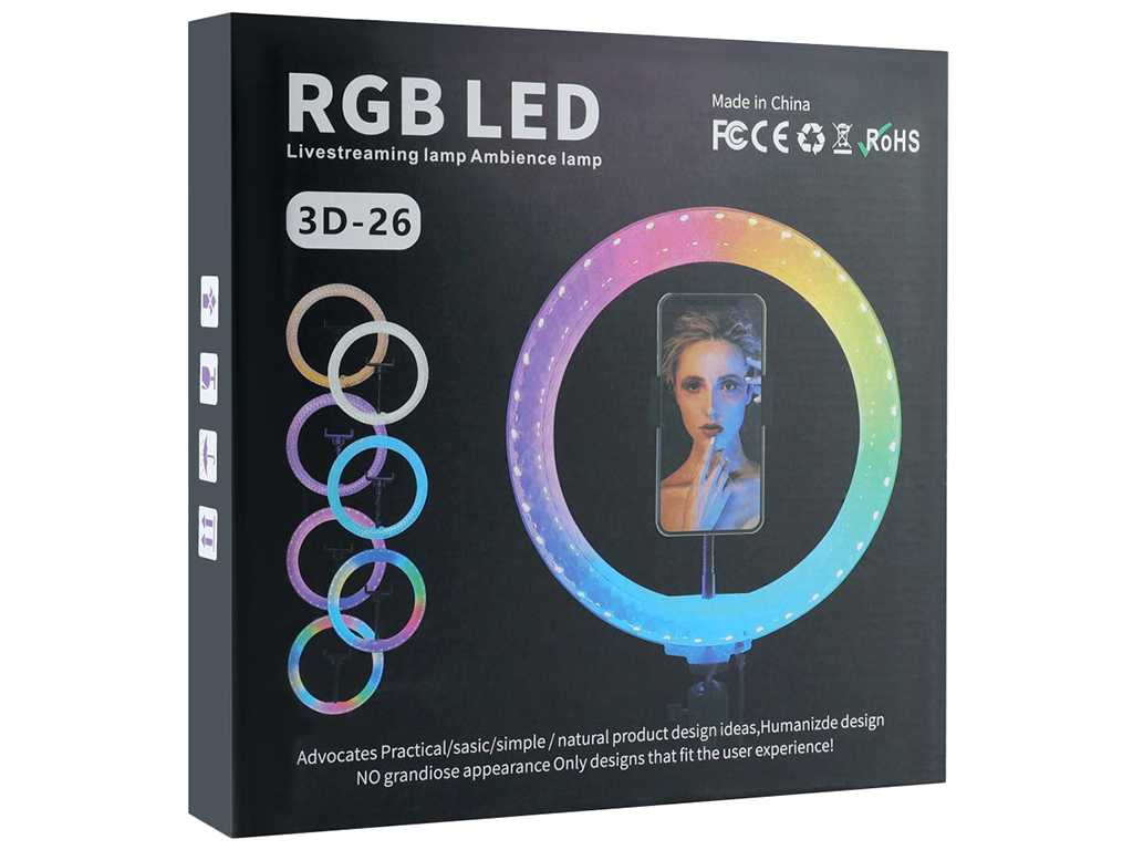 Лампа станет настоящим помощником начинающим и профессиональным фотографам, блогерам, визажистам и другим мастерам и пользователям, которым необходим качественный заполняющий свет с высоким индексом цветопередачи и возможностью гибкой настройки. Данная модель представляет собой усовершенствованную версию кольцевой лампы диаметром 30см, прозрачные детали которой и граненая задняя панель создают завораживающий визуальный эффект. Корпусные детали устройства качественно собраны, изготовлены из прочной комбинации поликарбоната и ABS пластика, которая в сочетании с надежными электронными компонентами гарантирует его длительный срок службы.