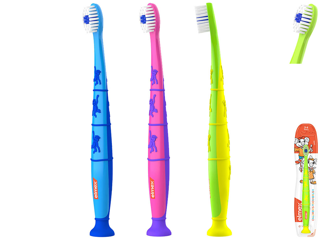 Зубная щётка Elmex детская, мягкая, для возраста 3–6 лет, с присоской (цена за 1шт)