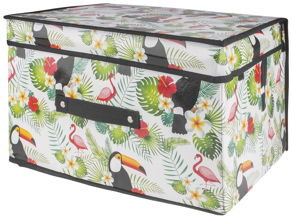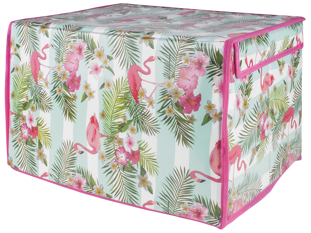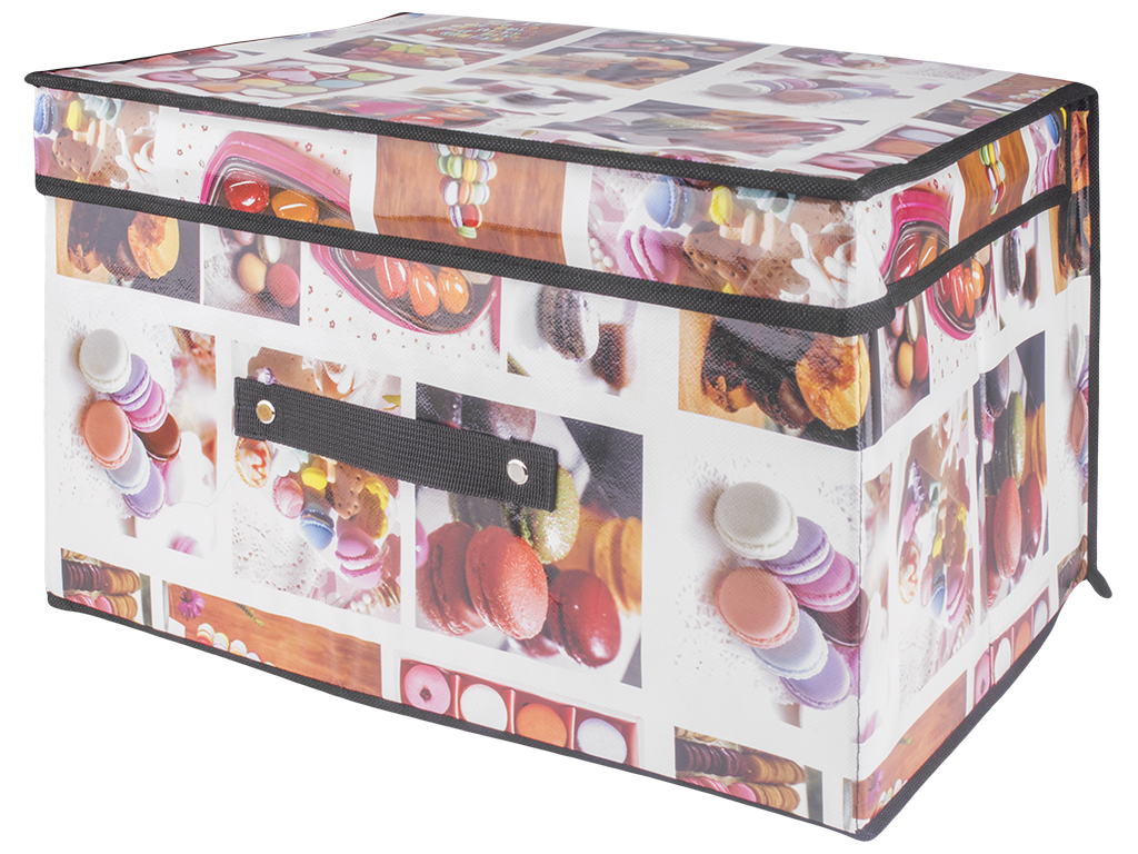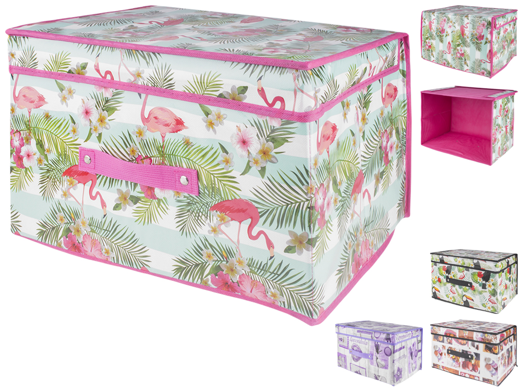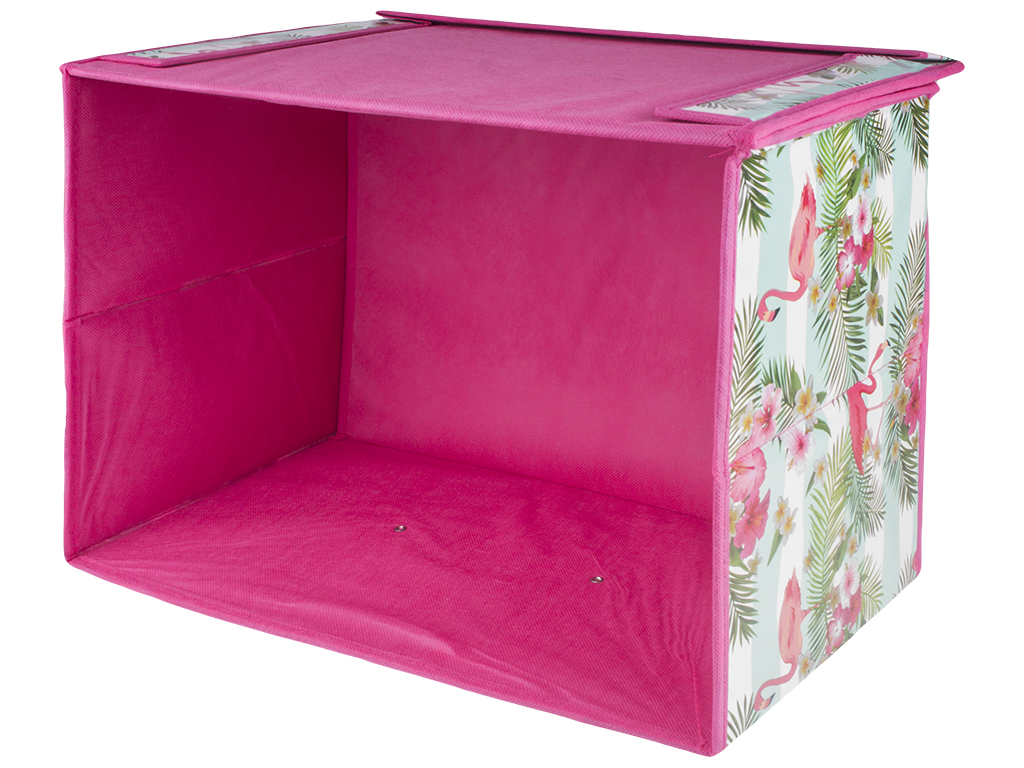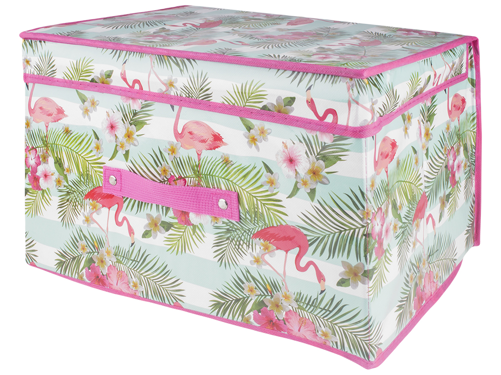 Размер: 40х30х25см. Материал: нетканое полотно с глянцевым покрытием, картон. Расцветки ассорти: лаванда, фламинго, какаду, печенье. Короб украшен принтом. Коробка-органайзер ПВХ для хранения белья. Крышка откидная не снимается. На тыльной стороне расположена ручка. Поставляется в пакете.