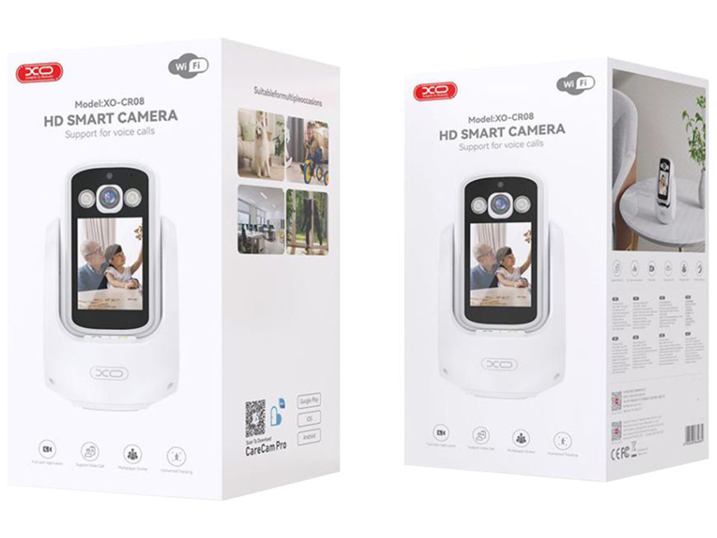 Смарт камера XO CR08 - это современное устройство для видеонаблюдения, обеспечивающее высокий уровень безопасности в доме или офисе. Качественные электронные компоненты и надежная сборка корпусных деталей из прочного ABS пластика и поликарбоната. Практичная конструкция с устойчивым основанием и поворотным механизмом - наклон вверх-вниз в пределах 60° и поворот в пределах 350°. Современная матрица с разрешением 2MP (1920×1080 пикселей) и качественный объектив с углом обзора 106°. Датчик обнаружения движения и технология ночного видения с поддержкой полноцветного изображения. Качественный дисплей, чувствительный микрофон с радиусом прослушивания 5м и громкий динамик мощностью 3W. Слот для карты памяти TF объемом до 128GB, модули Bluetooth и Wi-Fi (2.4G) для беспроводного доступа к сети интернет и удаленного управления со смартфона. Двусторонняя связь (аудио и видео) с несколькими пользователями одновременно; звуковая сигнализация; запись по тревоге; отправка уведомлений, фото и видео на смартфон (приложение CareCam PRO).