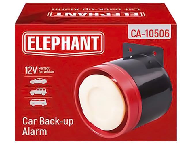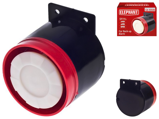 Сигнал заднего хода СА-10506 Elephant. Подключается к бортовой сети автомобиля 12В. Сигнал слышно на расстоянии до 2000 метров, отличный вариант для тех, кто хочет увеличить мощность сигнала в своем автомобиле. Предназначен для использования во время движения автомобиля задним ходом. Напряжение: 12В. Звуковое давление: 107ДБ. Ток: 0,6А. Частота: 1300Гц.