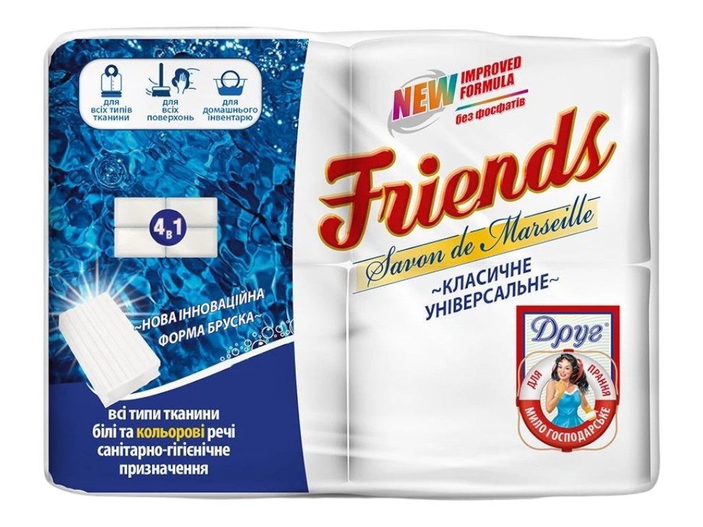 Мыло хозяйственное Друг friends, 4 шт по 115 г, для стирки, с отбеливающим эффектом