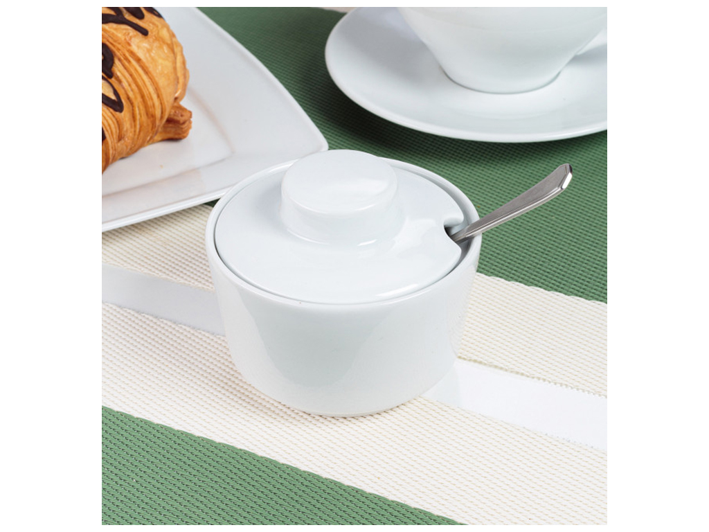 Сахарница станет стильным аксессуаром в сервировке стола. Имеет минималистичный современный дизайн, дополнена удобной крышечкой. Обеспечивает качественное хранение сахара, защищая от попадания солнечных лучей и пыли. Можно мыть в посудомоечной машине.