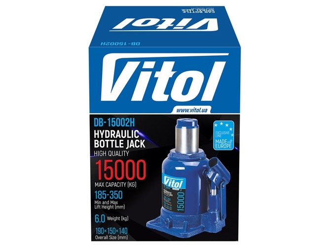 Гидравлический телескопический домкрат Vitol с грузоподъемностью 15т - это надежный и мощный инструмент для подъема больших транспортных средств. С его высотой подъема от 18,5 до 35см он способен легко поднимать тяжелые автомобили и другие транспортные средства. Этот домкрат поставляется со сборной ручкой для удобства и эффективности использования. Кроме того, в комплекте с ним идет инструкция по использованию, которая поможет пользователю настроить и использовать домкрат безопасно и эффективно. Кроме основных характеристик, спускной клапан позволяет плавно и без усилий вернуть домкрат в исходное положение, а защитный механизм защищает его от перегрузки, что обеспечивает безопасность при использовании.