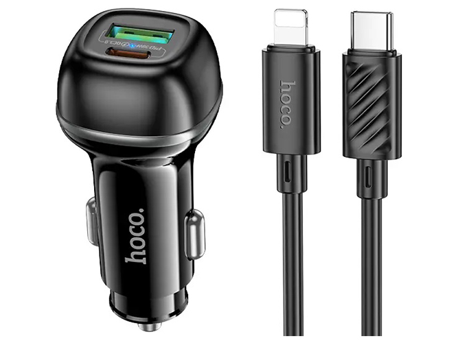 Авто Зарядное Устройство Hoco Z58A 1USB/1USB-C QC/PD48W+Type-C to Lightning Цвет Черный
