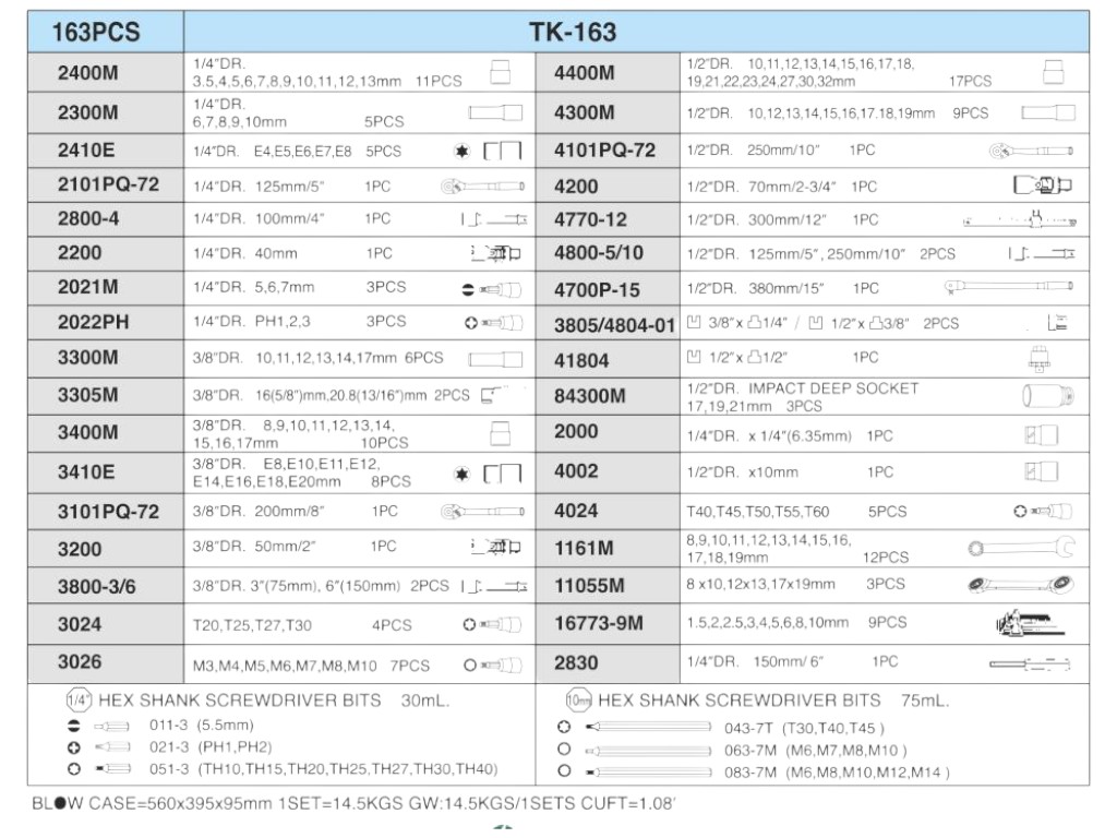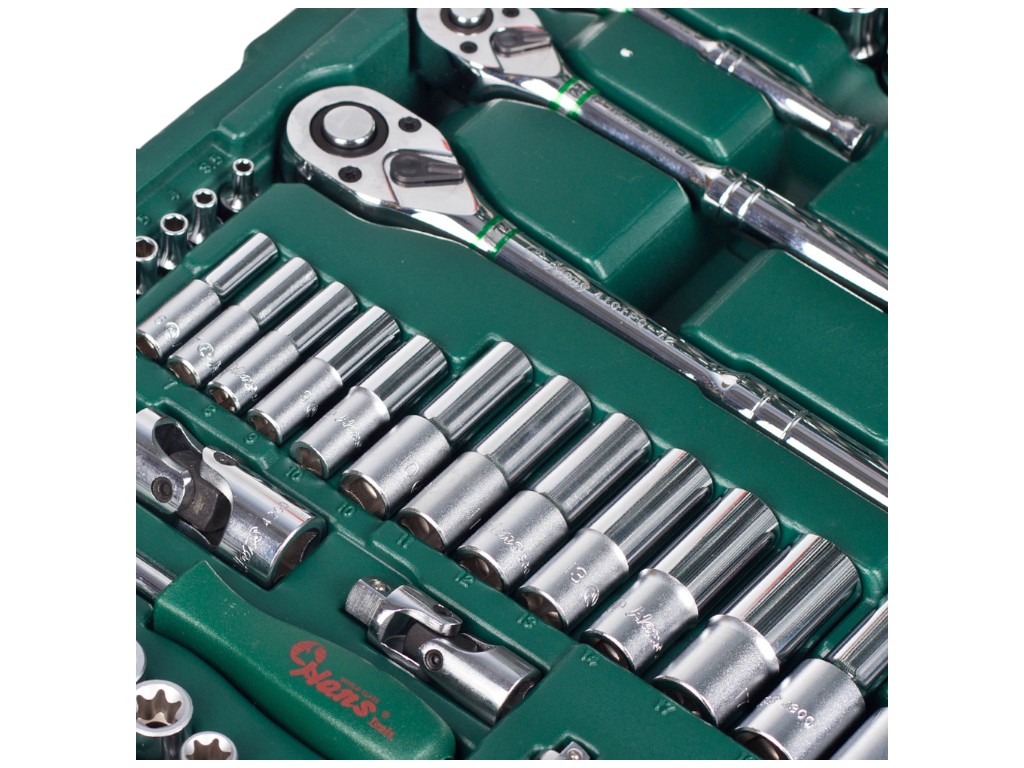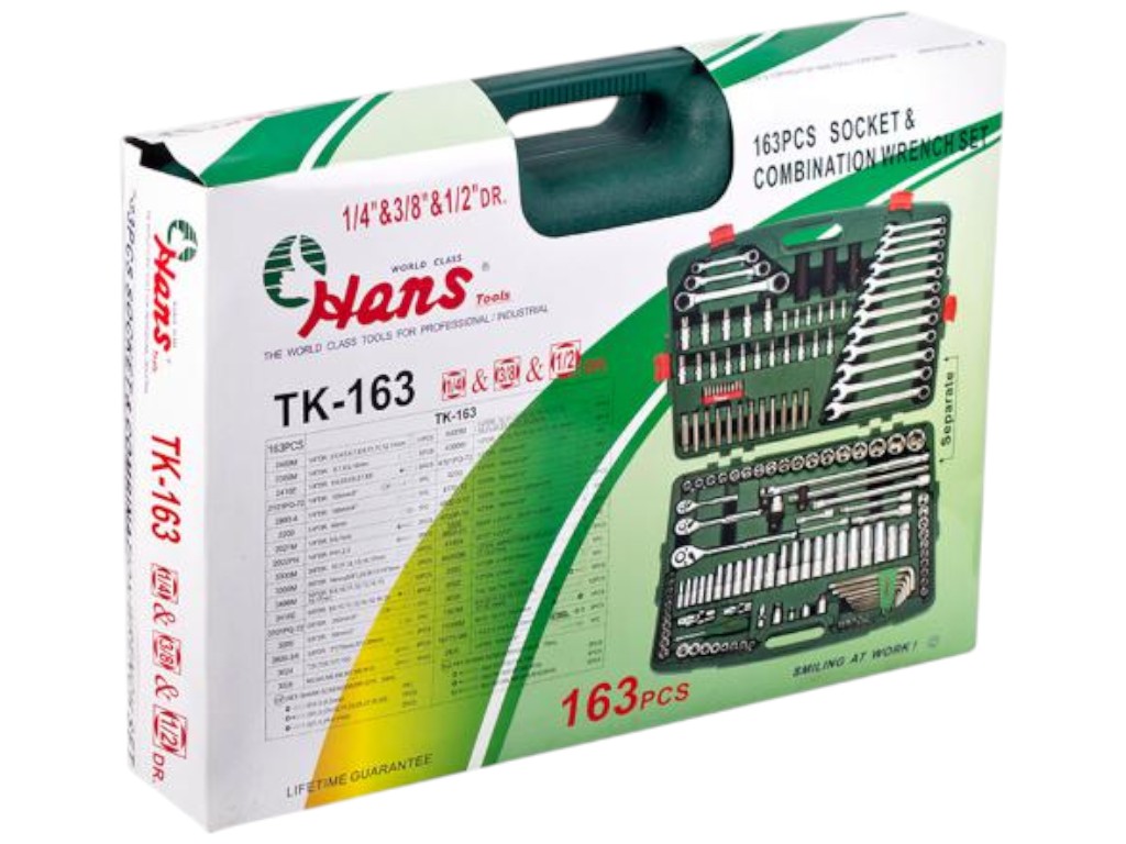 Профессиональный набор инструмента HANS TK-163 — это универсальный комплект для обслуживания, ремонта и сборочных работ любого уровня сложности. В одном кейсе собраны все необходимые элементы для работы с крепежом различных стандартов, что делает этот набор незаменимым в автосервисах, на производстве, а также в арсенале домашних мастеров. Комплект состоит из 163 предметов, выполненных из высококачественной инструментальной стали с хромированным покрытием. Этот материал известен своей прочностью и устойчивостью к механическим нагрузкам. Все элементы имеют шестигранный профиль, что обеспечивает плотный контакт с крепёжом и снижает риск срыва грани. Каждый инструмент точно подогнан, а эргономичные трещотки с механизмом на 72 зуба работают мягко и чётко, обеспечивая контроль над усилием при работе. В набор входят головки, трещотки, воротки, удлинители, карданные переходы, комбинированные ключи и отверточные насадки. Все элементы размещены в прочном пластиковом кейсе с надёжными защёлками и продуманной системой организации. Набор охватывает три типоразмера — 1/4", 3/8" и 1/2", что делает его универсальным решением для обслуживания автомобилей, мотоциклов, оборудования и бытовых систем. В кейсе представлены головки как стандартной, так и удлинённой формы, а также ударные головки для интенсивных нагрузок.