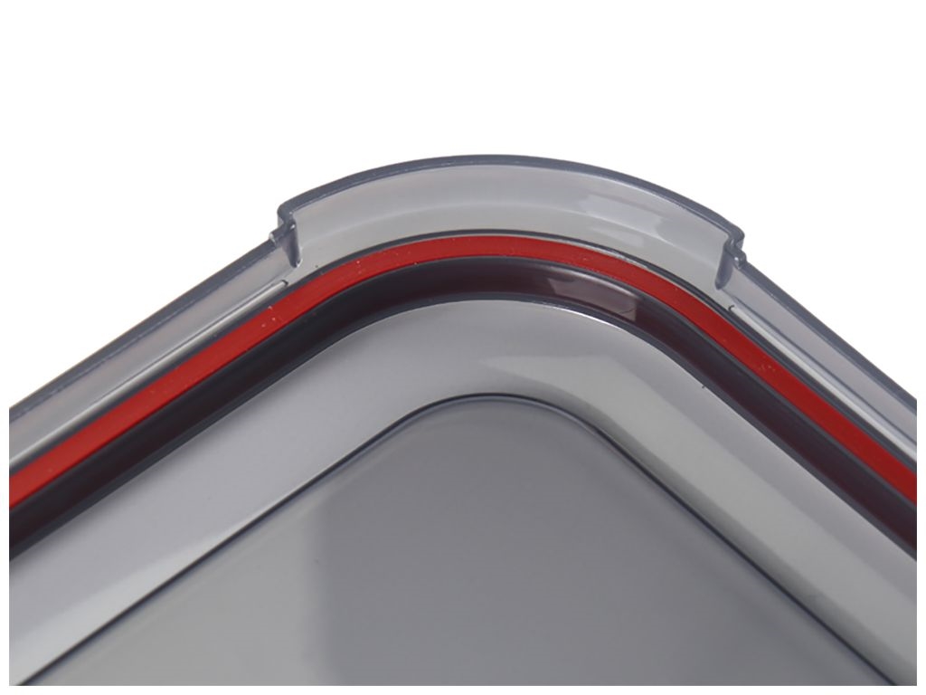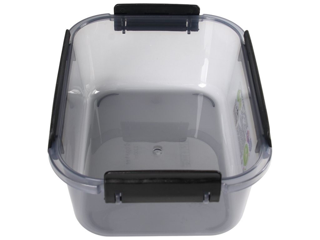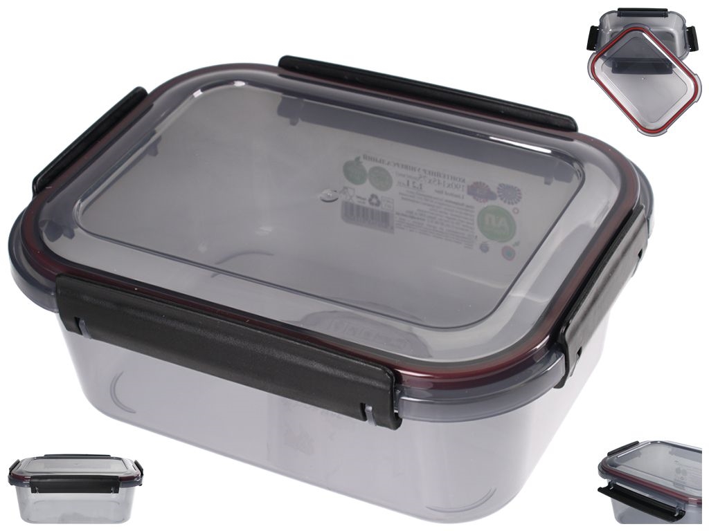 Прямоугольный пластиковый контейнер с герметичной крышкой - идеальный выбор для хранения еды и других вещей. Благодаря четырем надежным фиксаторам, он обеспечивает безопасное закрытие и защиту содержимого от протеканий и посторонних запахов. Резинка, встроенная в крышку, добавляет дополнительную герметичность, делая контейнер отличным для транспортировки еды или хранения влажных продуктов. Стильный полупрозрачный черный цвет выглядит элегантно и позволяет быстро проверить содержимое. Это практичный аксессуар для кухни, пикников и путешествий.